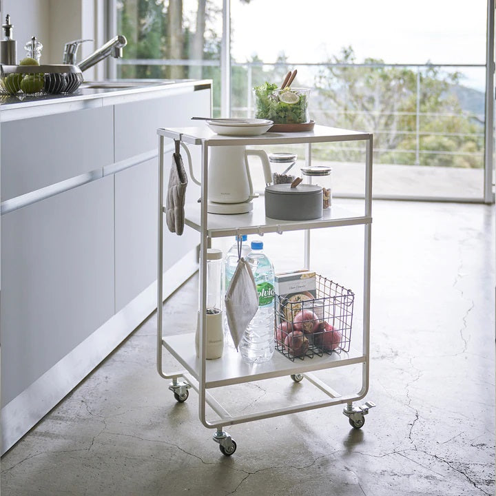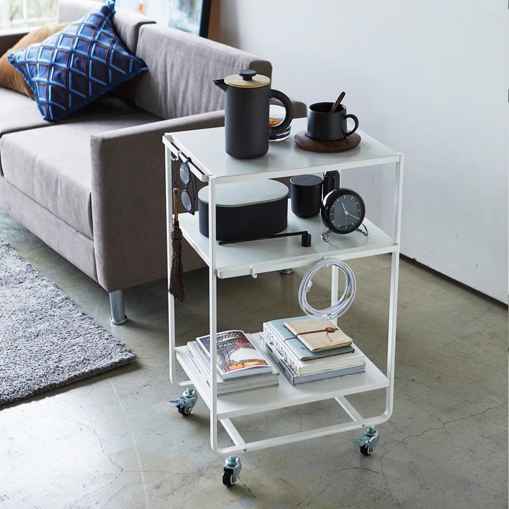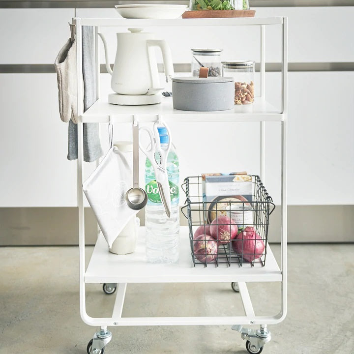 Rolling carts have endless uses, from enjoying a Sunday morning breakfast in bed to ferrying refreshments to the living room for guests. With three levels for storage and hooks for hanging, the possibilities stretch on and on.