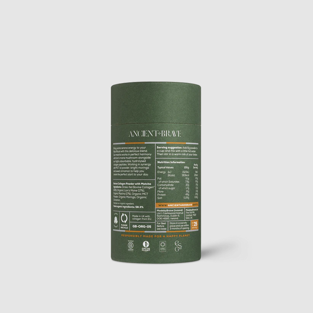 The perfect harmony of organic matcha paired with Ancient + Brave signature True Collagen peptides and pure organic Lion’s Mane mushroom to dial in a clear mind and nourish your skin from within.