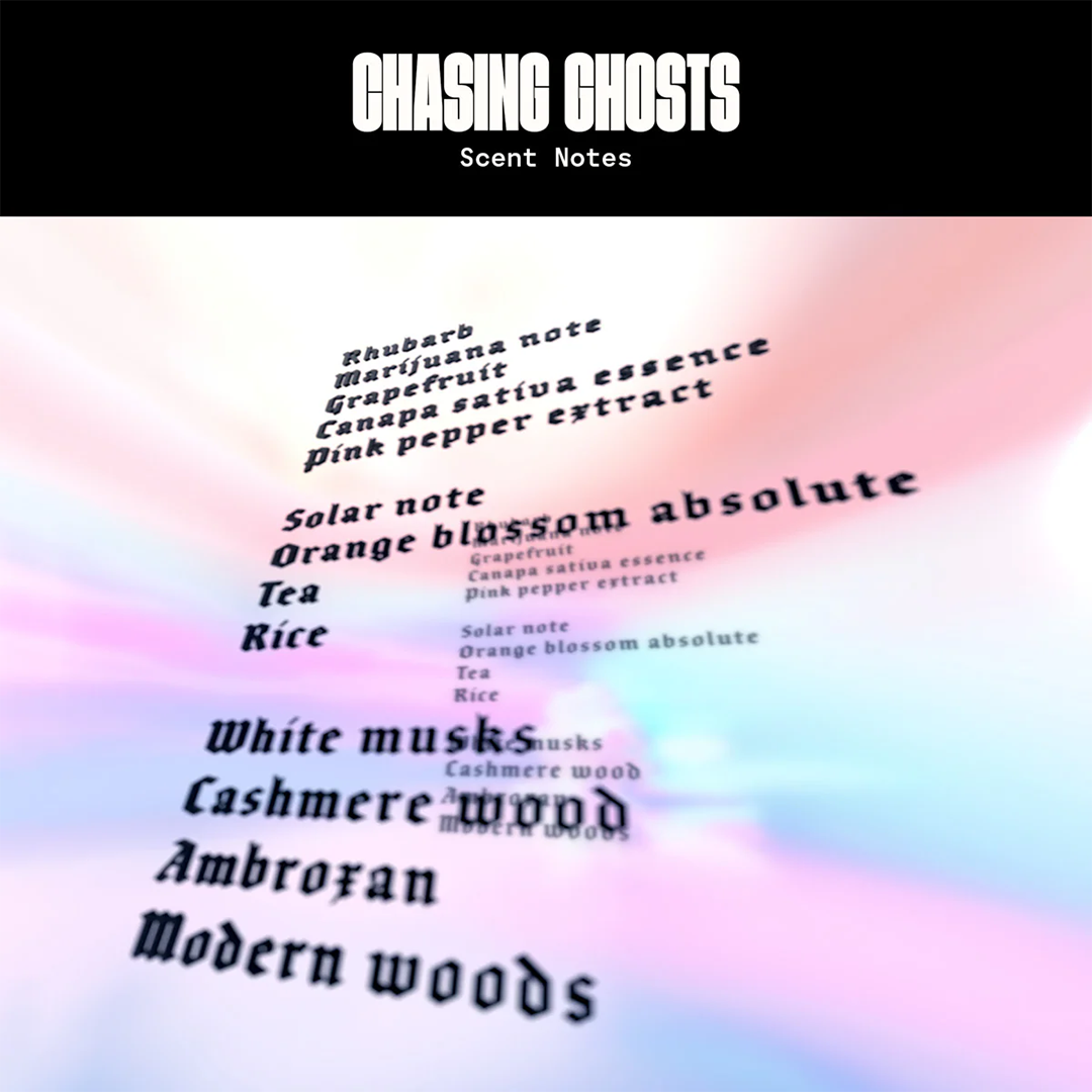 Rhubarb, Marijuana Note, Grapefruit, Canapa Sativa Essence, Pink Pepper Extract, Solar Notes, Orange Blossom, Absolute, Tea, Rice, White Musk, Cashmere Wood, Ambroxan, Modern Woods