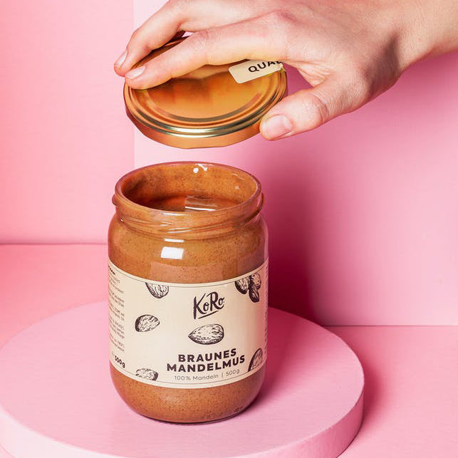 KoRo's brown almond butter does not contain any flavourings, colourings, or preservatives. You don't have to worry about added (palm) oil or salt either, because this almond butter consists of 100% almond kernels and has a naturally creamy consistency which needs absolutely nothing else.