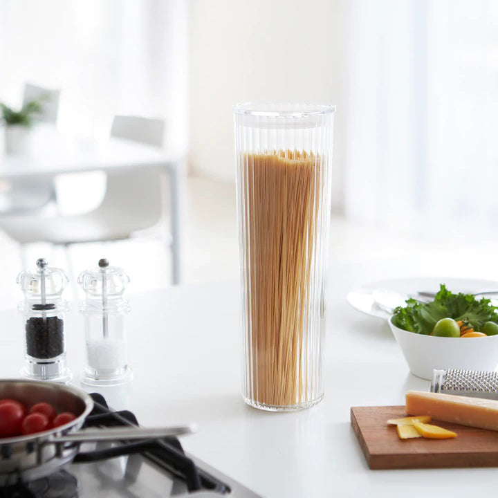 This canister can store a variety of kitchen items or food and it's transparency highlights it at the same time. Clean and modern design.