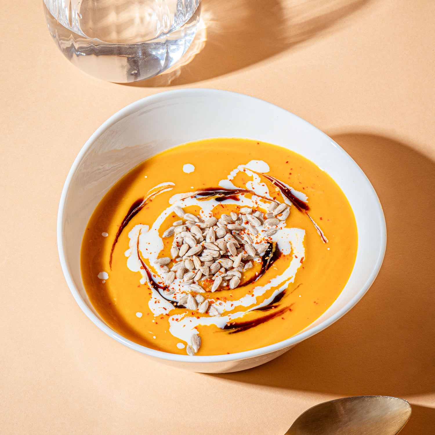 Order your portion of pumpkin puree so you can feast on it any time of the year! Pumpkin puree – your kitchen's allrounder Do you pray for the well-being of your fingers every time you cut a pumpkin? Don't worry! With Koro you get your serving of pumpkin already pureed - and gently cooked. So you always have your favourite puree in stock and can enjoy the autumn fun in any weather. Bright orange, this pumpkin puree makes your dishes a colourful highlight on the table. Whether as a base, main course or side dish - pumpkin puree works in any role!"
