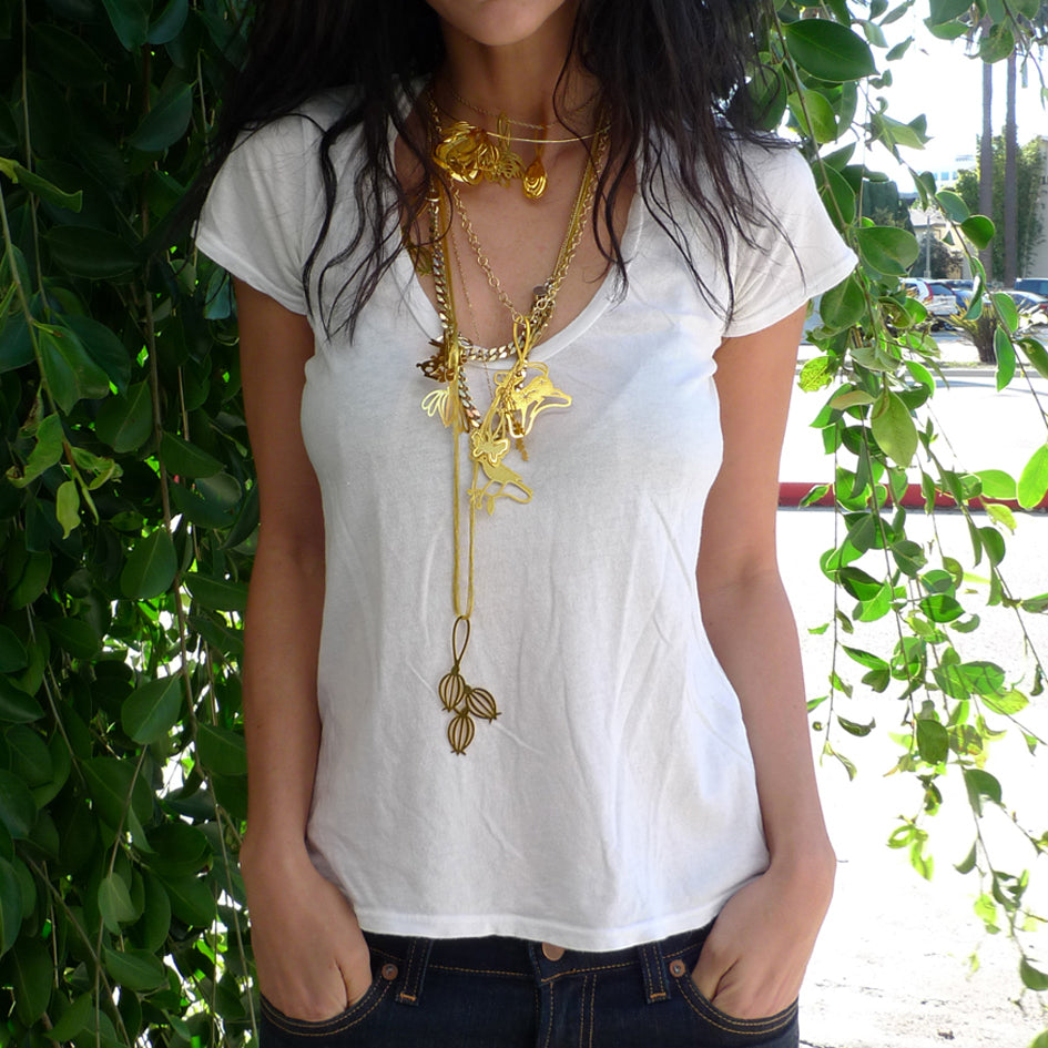 Long time collaborator Tord Boontje has created for Artecnica an iconic nature inspired jewelry collection of 18k gold and silver plated metal. This delightful collection embraces the delicate nature of fine jewelry in a playful manner, representing lovable creatures and whimsical flowers.