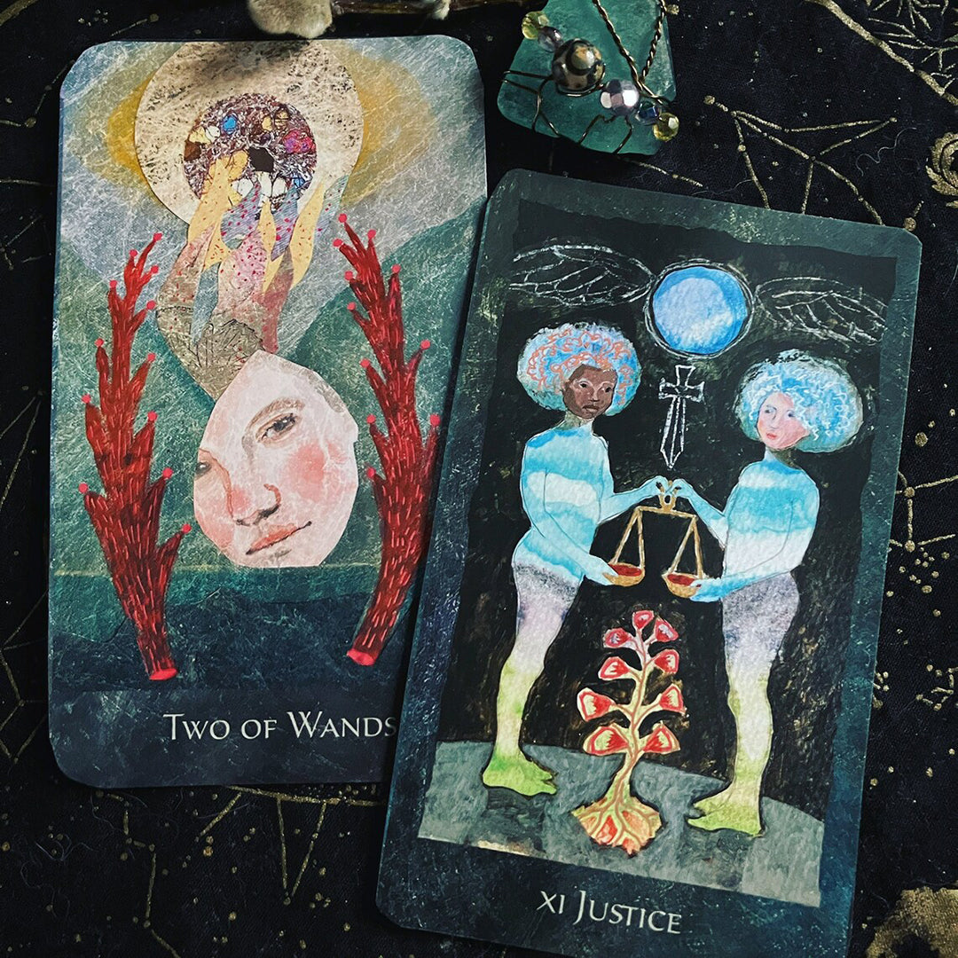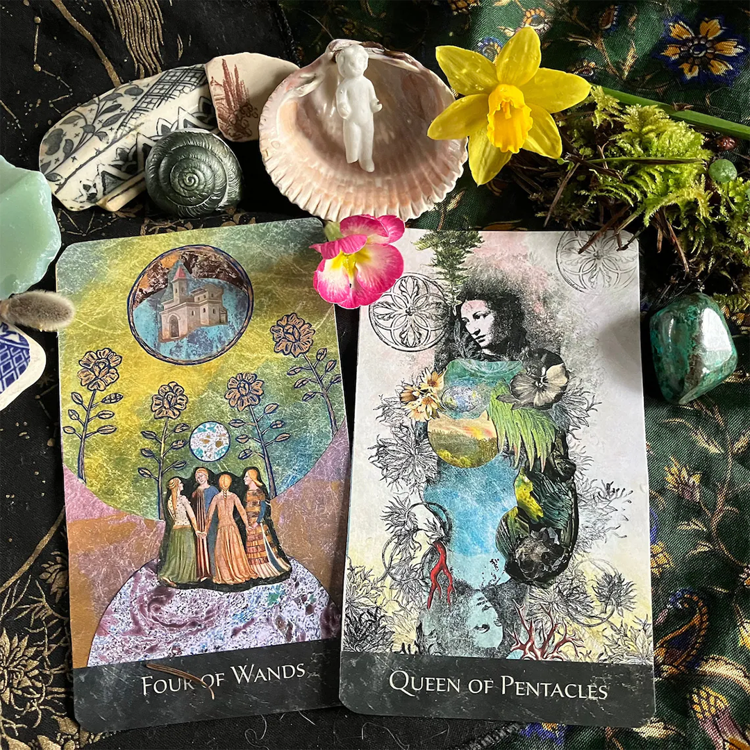 "I'm a painter and mixed media artist living in the Pacific Northwest of the United States. I've been creating divination decks inspired by the beauty and mystery of the natural world since 2016, using a unique blend of painting and hand-cut collage. My two oracle decks, The Illuminated Earth Oracle and the Faceted Garden Oracle have reached an international market and continue to be popular with deck collectors, art lovers, and wisdom seekers."
