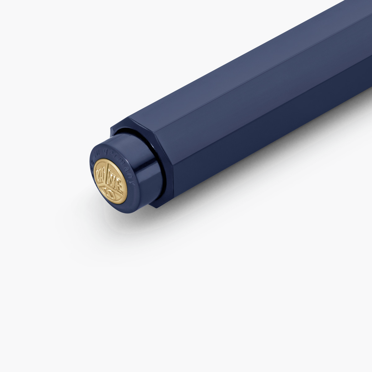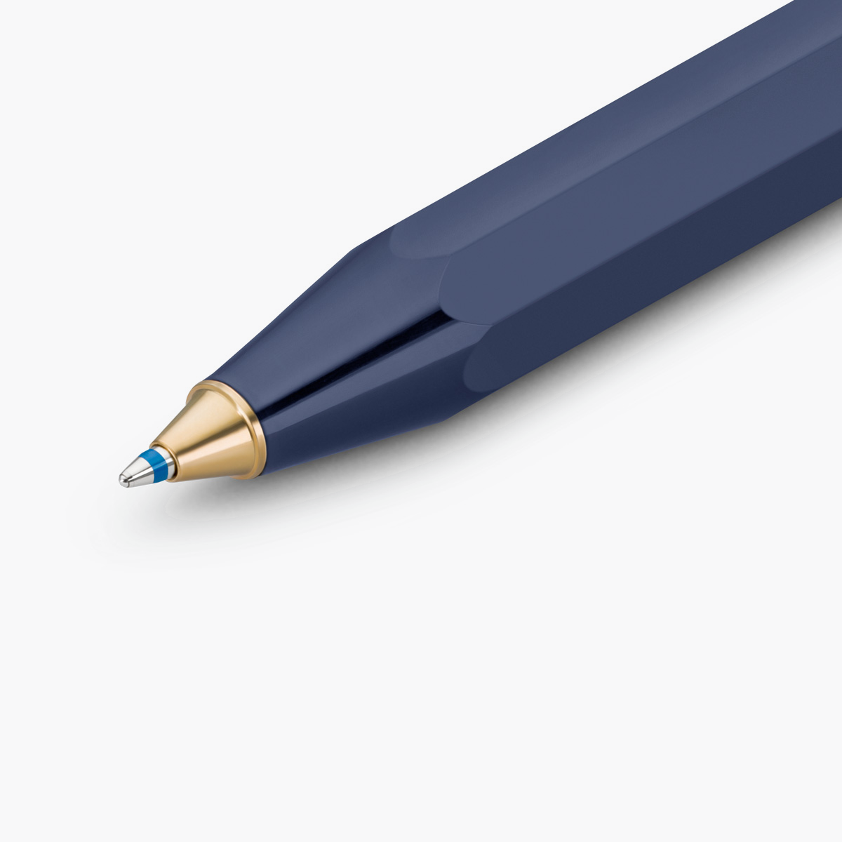 The Kaweco Classic Sport closely follows the original octagonal design, which is very compact at just 10.4cm (retracted) in length and 1.4cm in diameter, making it easy to carry around. It is made from tough but lightweight plastic and features a gold metal Kaweco logo on the top of each push button, which uses a retractable mechanism.