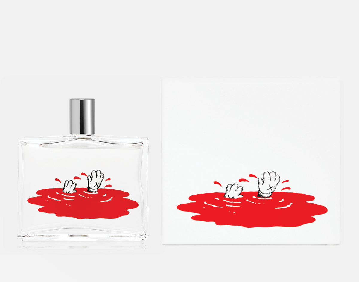 COMME des GARÇONS and KAWS are pleased to present the artist’s first scent, MIRROR. Inspired by KAWS’s multi-faceted practice, MIRROR brings a complex blend of optimistic fragrant notes together in collaboration to create a musky floral scent. The bottle design is a nod to the artist’s iconic COMPANION character who materializes across a variety of medium, from fine art to consumer products, leveling the hierarchies between “high” and “low”.