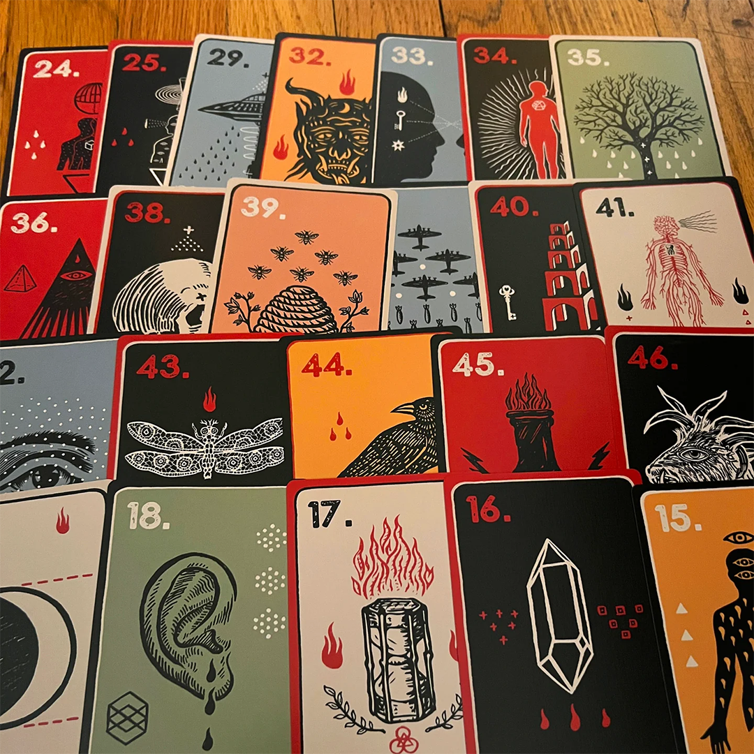 - 63 cards total (size: 8.1 x 12.7cm)