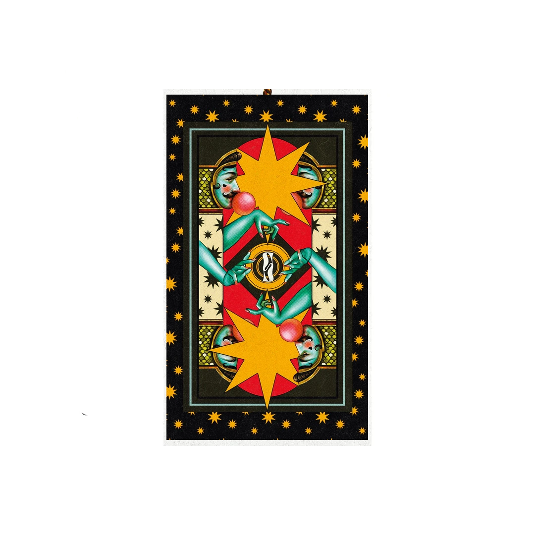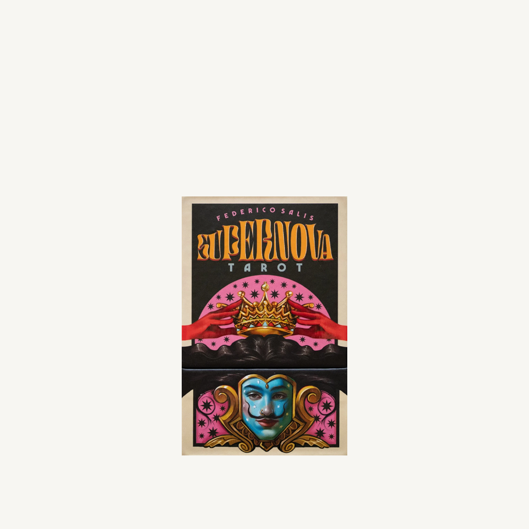 Elegant, eccentric, exuberant, rebellious - all this, and much more, is the new Supernova Tarot by Federico Salis. Its unique style, with quirky characters, pop references, sharp geometries and an extravagant color palette, manages to give a fresh and innovative touch to the traditional Tarot structure. The result is a deck with an authorial edge, full of details and graphic references to enrich your readings.