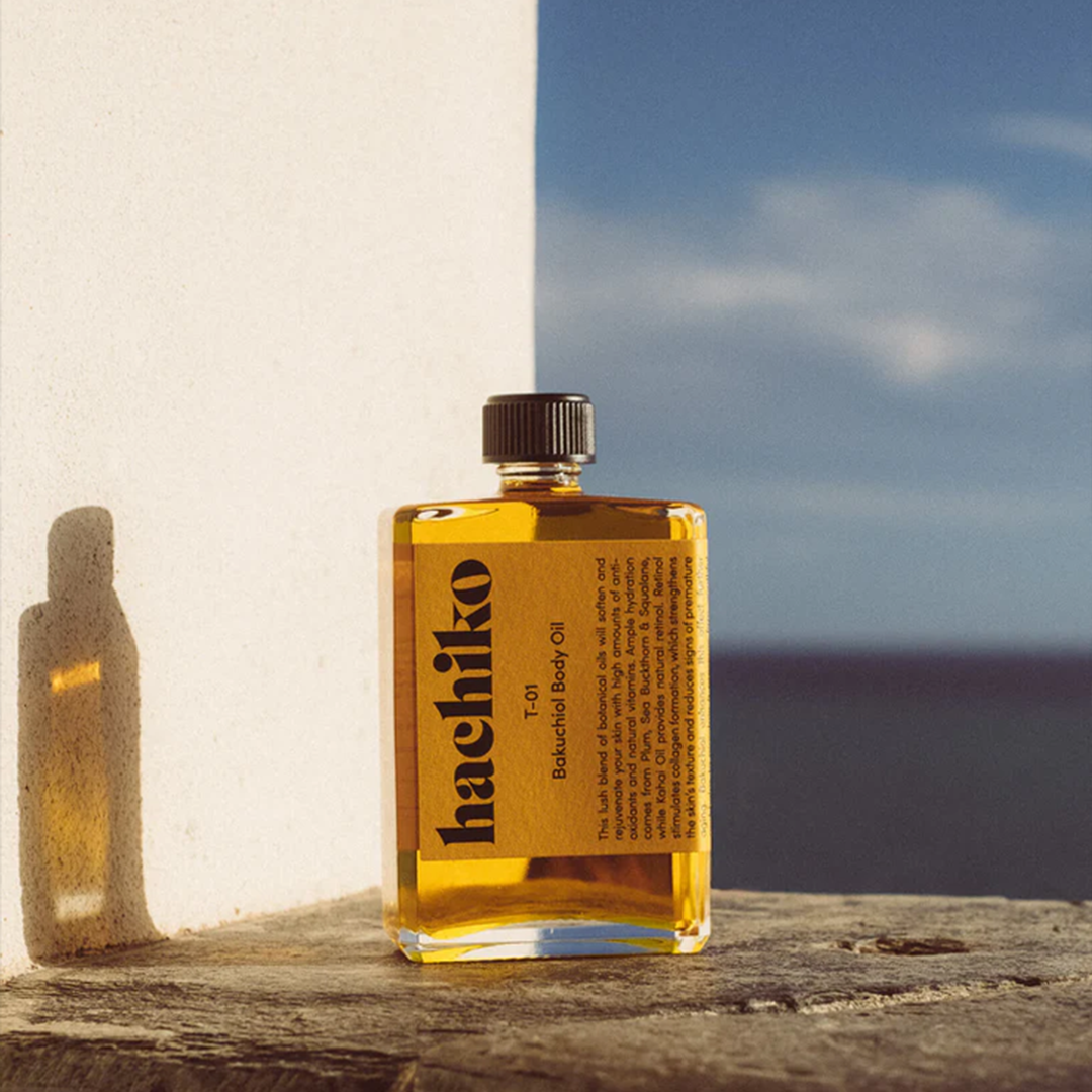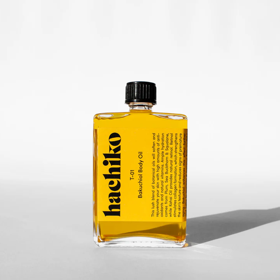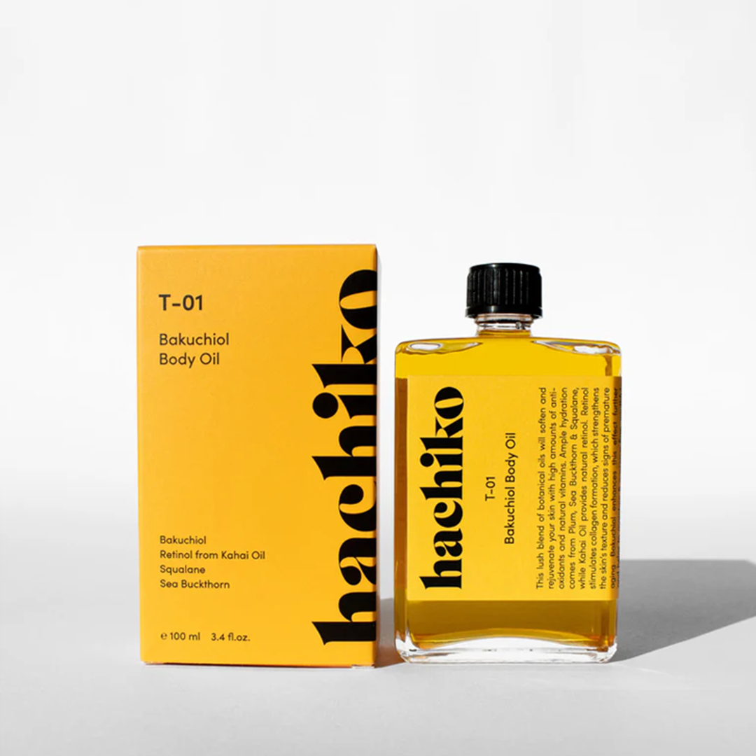 HOW TO USE: Apply equal amounts of T-01 Hyaluronic Body Serum and T-01 Bakuchiol Body Oil to the palm of your hand and mix with your hands. Then gently massage into clean skin. We recommend applying directly after showering, when your skin is still slightly damp, to help the ingredients absorb even more easily.