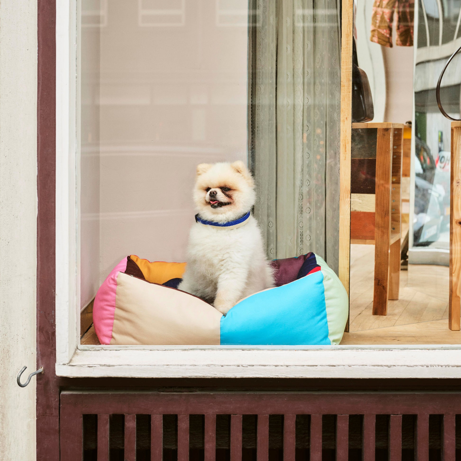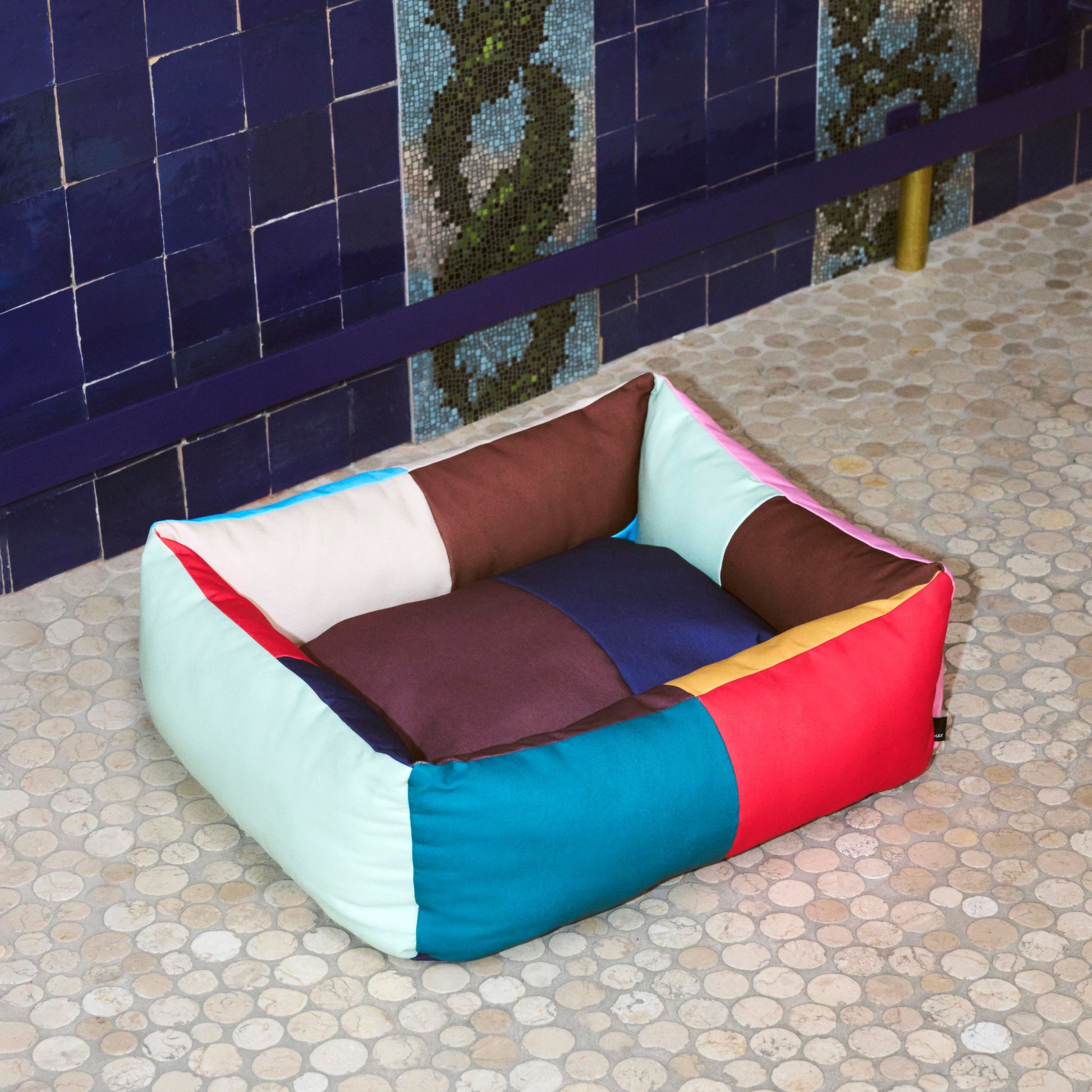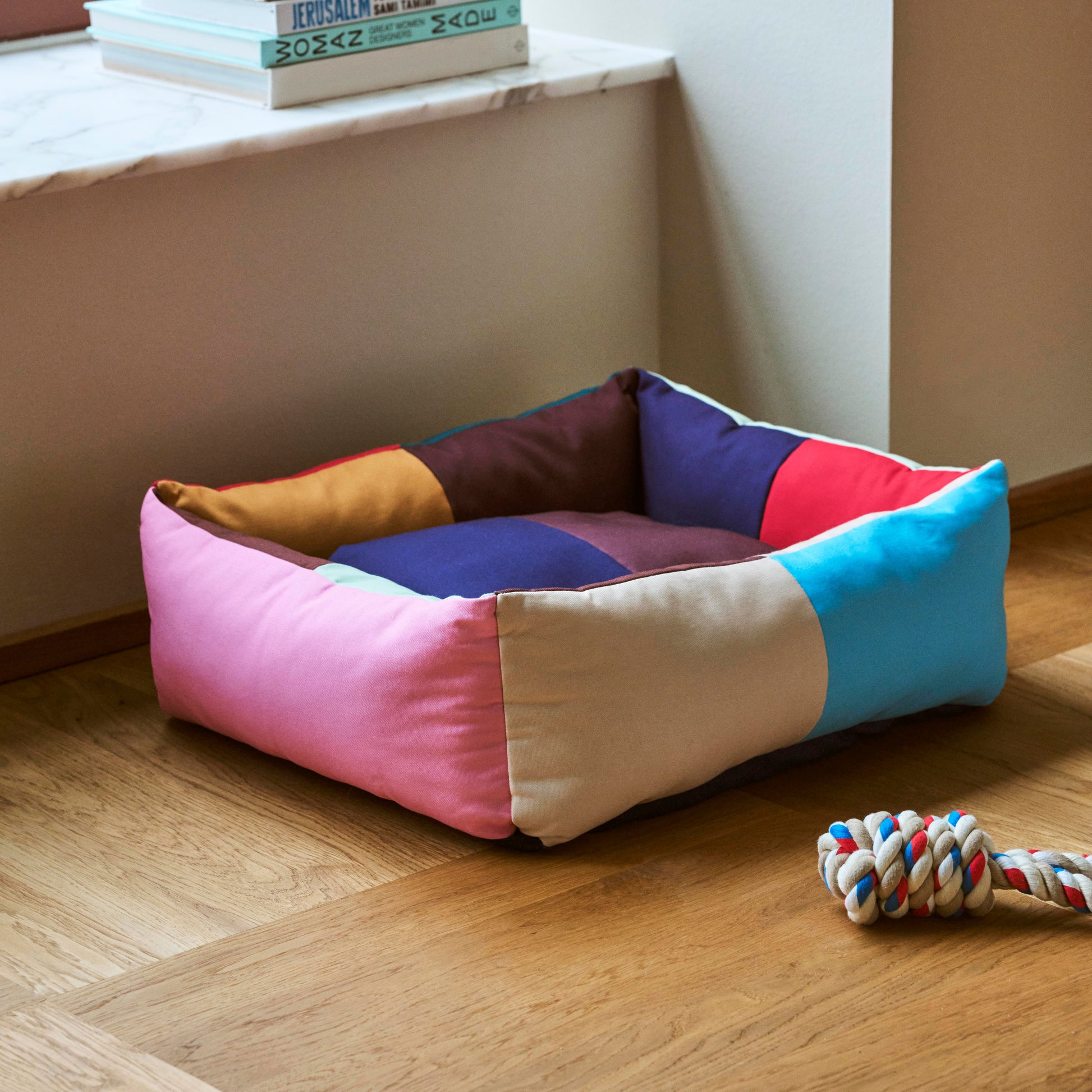 Featuring a playful colour-blocked design, the Dog Bed is made from strong recycled polyester with a washable, removable cushion filled with recycled polyester.