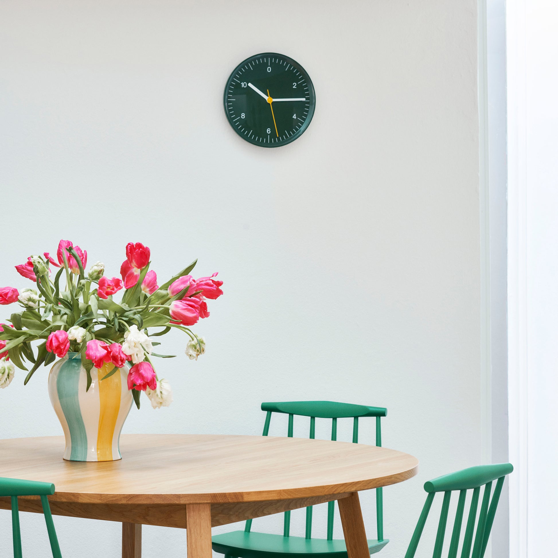 The clock is easy to hang and features a smooth second hand movement that makes no ticking sound. These clocks adapt to any space while complementing the HAY universe.