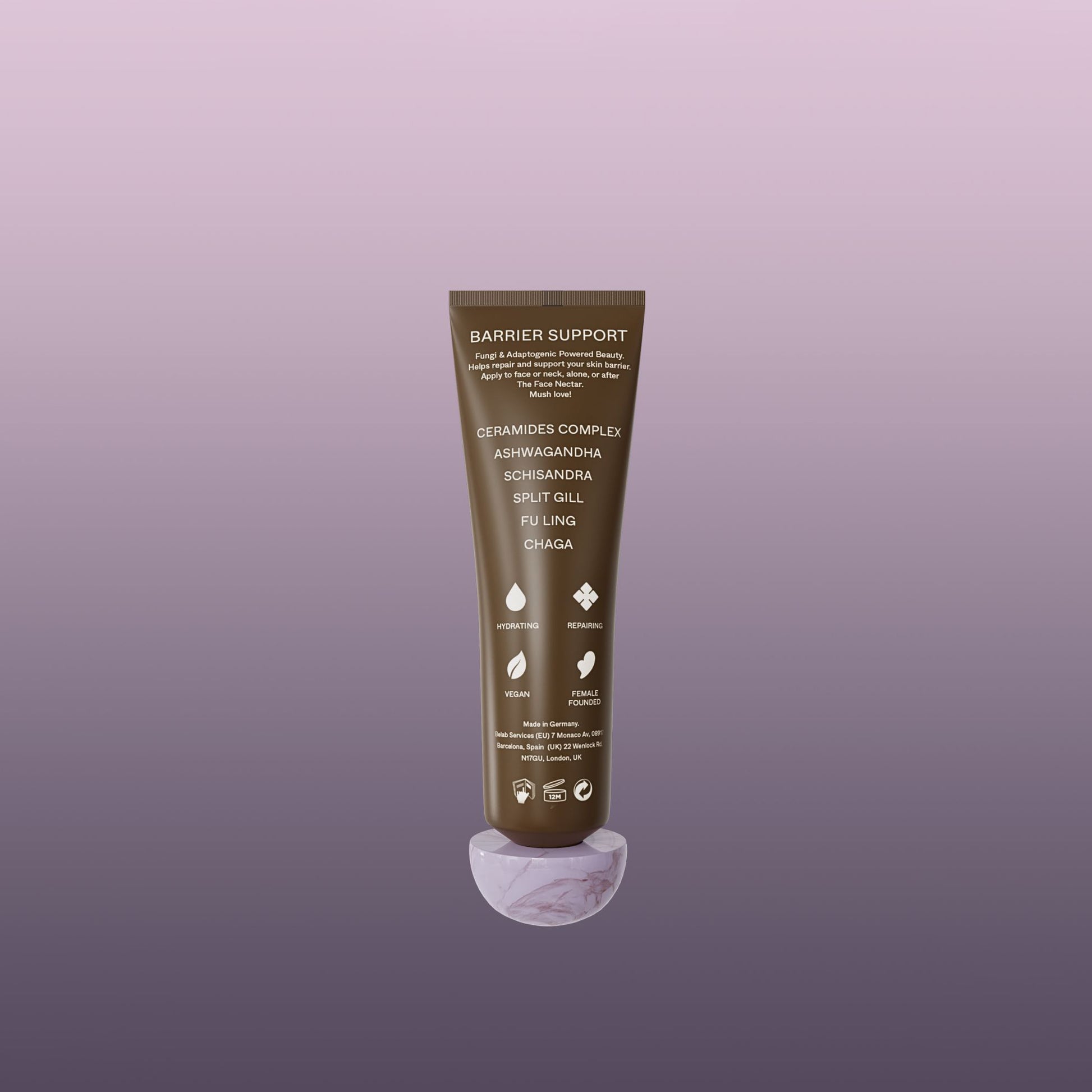 - Proven to prevent repair, hydrate and nourish the skin barrier- a 5-ceramide complex packed with medicinal mushrooms and adaptogens.
