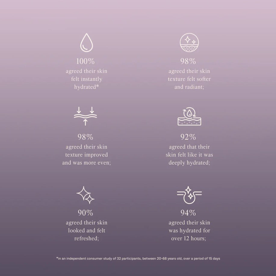 The results? A deeply hydrated, glowy complexion that feels instantly pillowy, calmer and plump.