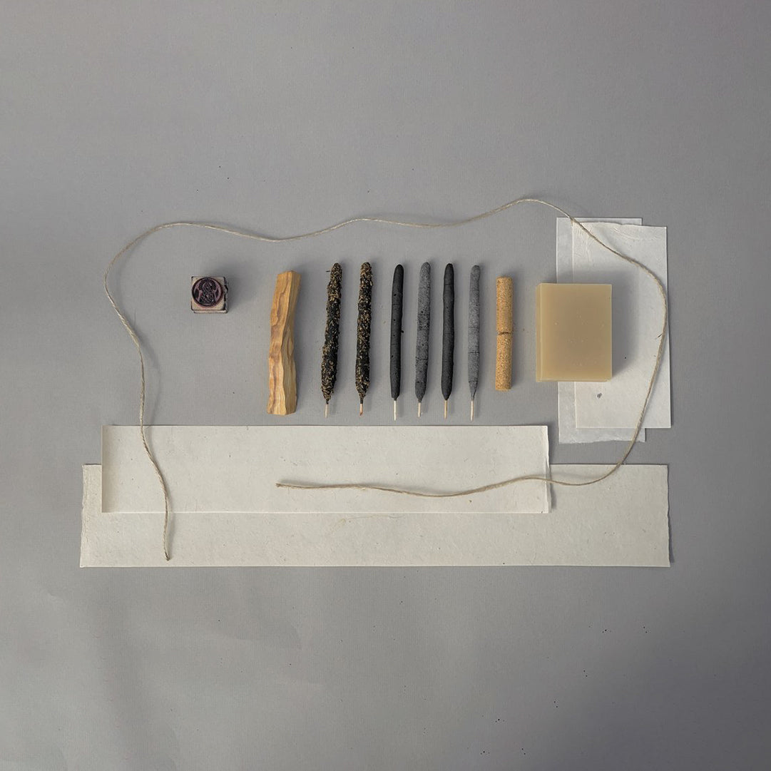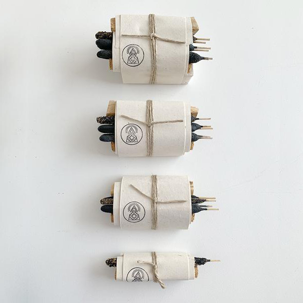 Bundled with Breu resin, Palo Santo, White Sage, Chacrona & Jagube artisanal incense sticks. Hand pressed Palo Santo incense and Palo Santo Wood in natura.