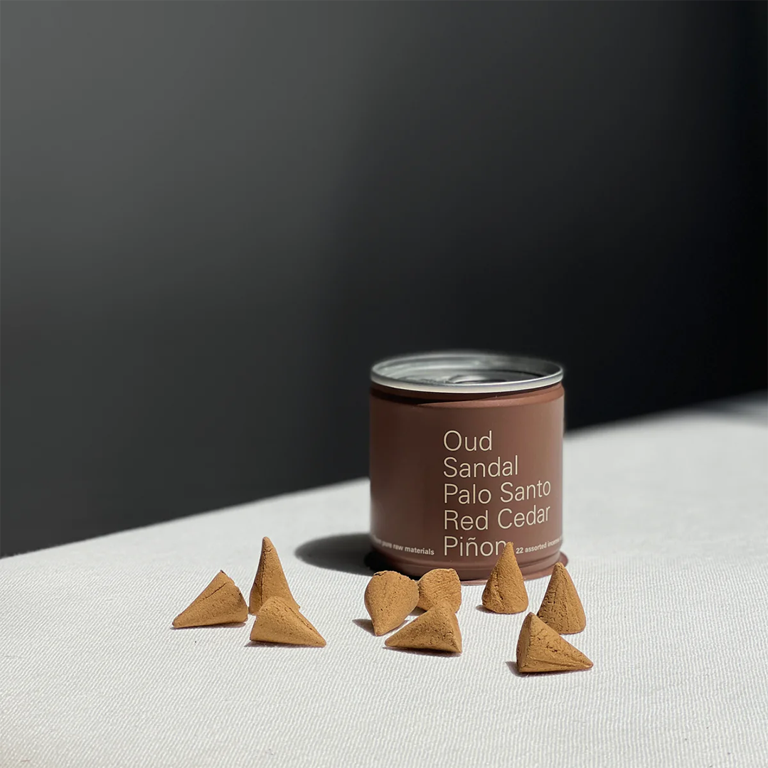 Made from raw materials in Incausa small factory in Brooklyn, using timeless Japanese Makko blending techniques to offer an assortment of 22 hand- pressed incense cones.