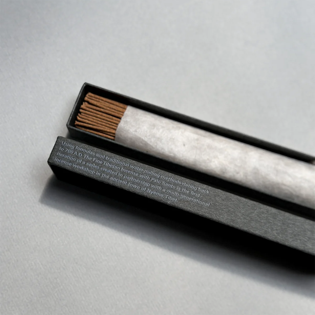 The Fine Tibetan Incense with Palo Santo is the first iteration of a series created in partnership with a multi-generational incense workshop in the ancient town of Nyêmo, Tibet.