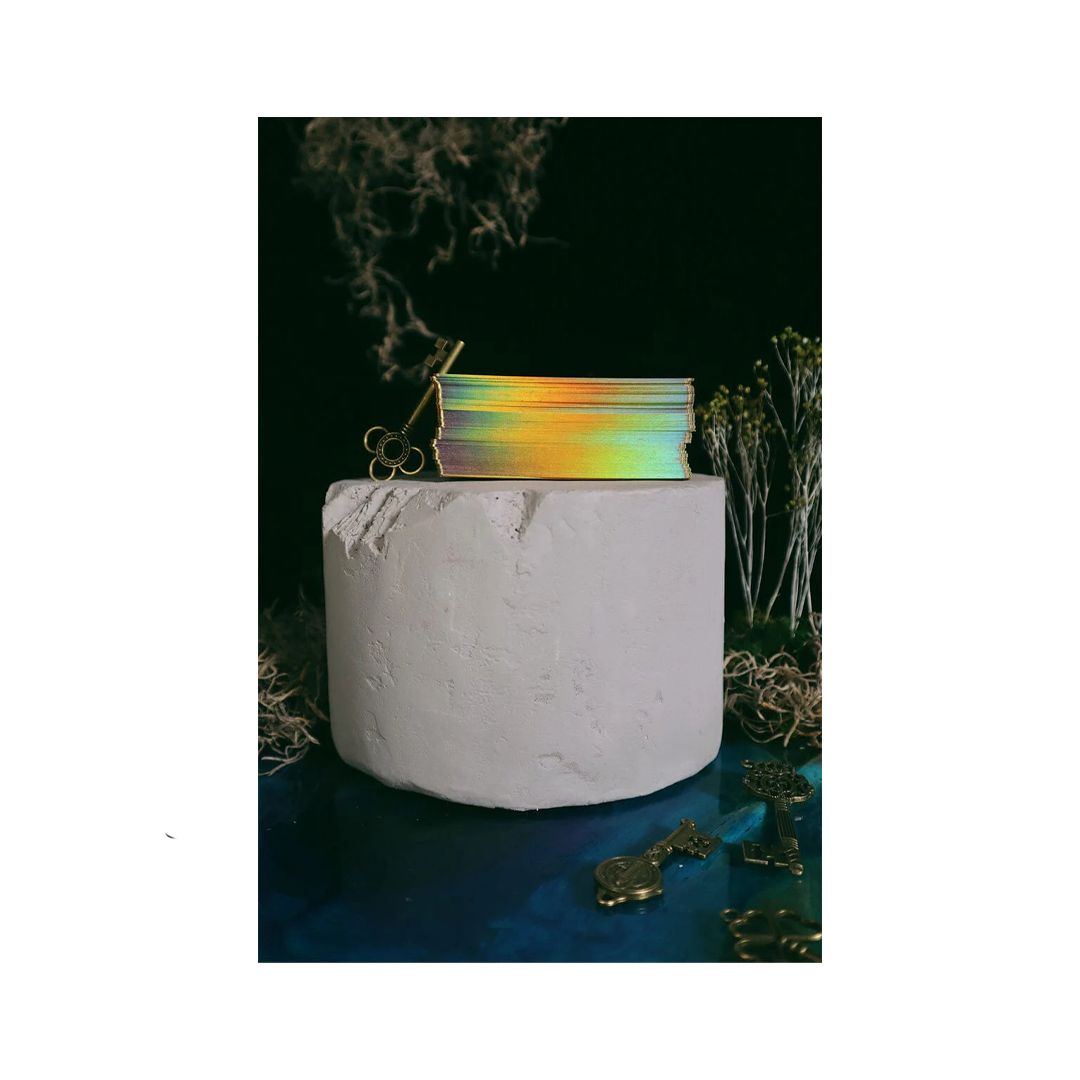 Echoing the panoramic storytelling found in other decks within the Visions Universe, the major arcana of the Green Glyphs Tarot weaves together a tapestry of tales, enabling fluid interpretations and visually cohesive narratives.