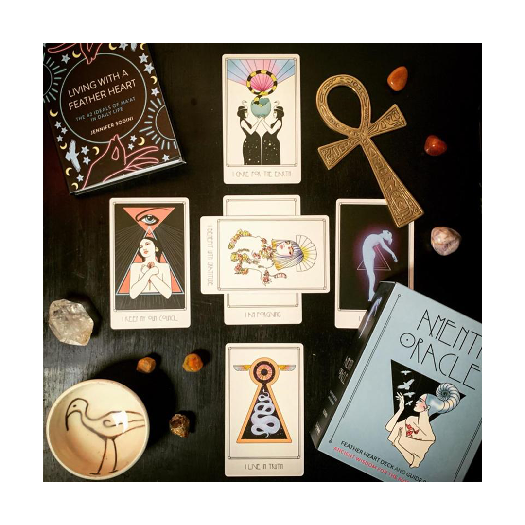 What sets AMENTI apart from other oracle decks is that, while rooted in the ancient Egyptian wisdom set out in the 42 Ideals of Ma’at, our intention is to offer a modern resource for understanding the timeless philosophies that are imbued in almost every wisdom tradition. Offering a holistic worldview, and honoring these sacred teachings, our desire is to explore unity consciousness by making this wisdom accessible to all.