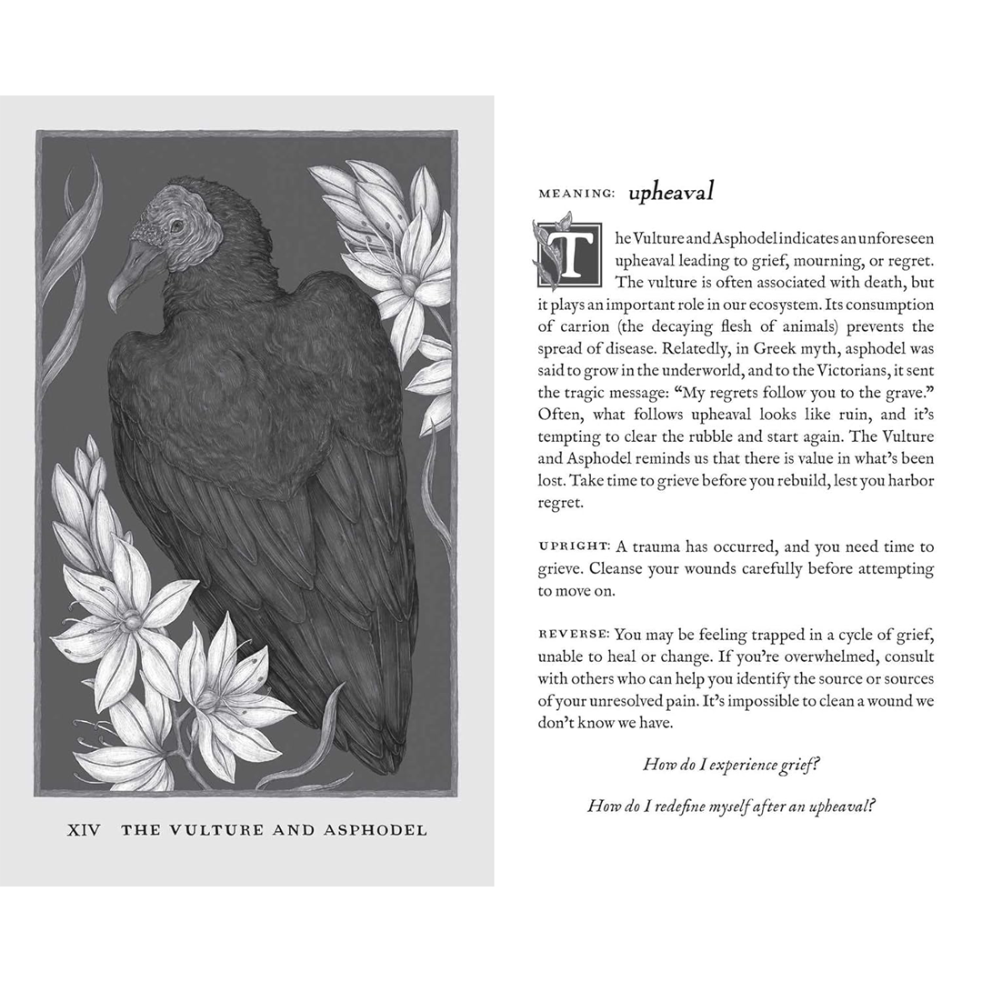 Each unique combination, brought to life in artist Jessica Roux’s detailed, historically evocative style, transports seekers to another time and place, offering insight, guidance, and an invitation to reflect on the natural world.