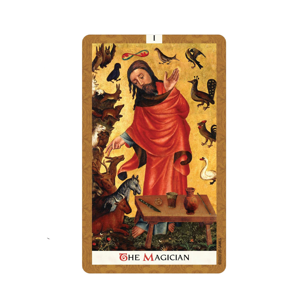 Kat Black has created a sumptuous tarot deck using a sophisticated collage technique that brings new luster and meaning to the European masterpieces she has assembled for this special deck. Each painting been meticulously researched and chosen specifically for its divine evocations. While her deck remains true to the original Rider-Waite traditional symbolism, Kat Black offers accessible tarot interpretations that are fresh and welcoming.