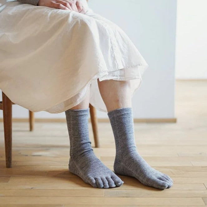 Five finger socks made of crisp, smooth linen. Linen absorbs unwanted moisture and releases heat, providing feet with exceptional comfort during hot summer days.