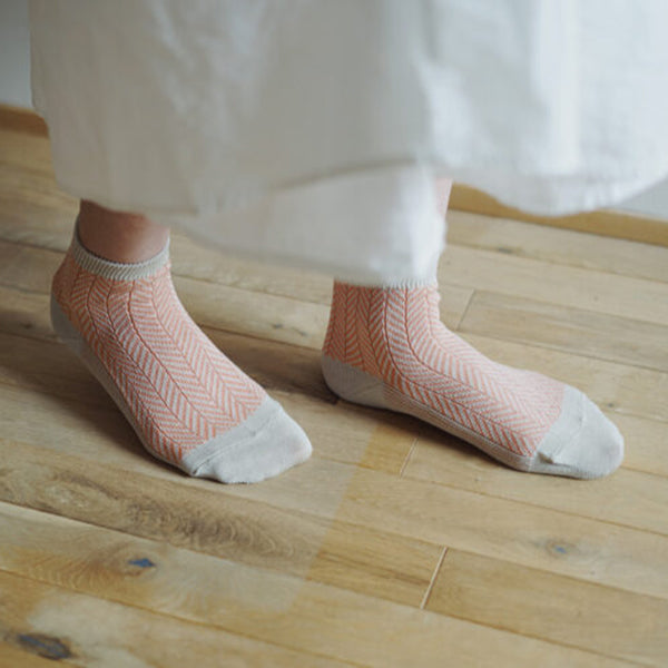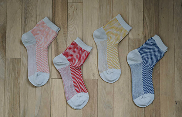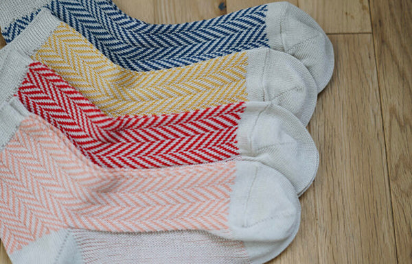 Giza Cotton Herringbone Socks _ Yellow, Navy, Red or Coral Pink
