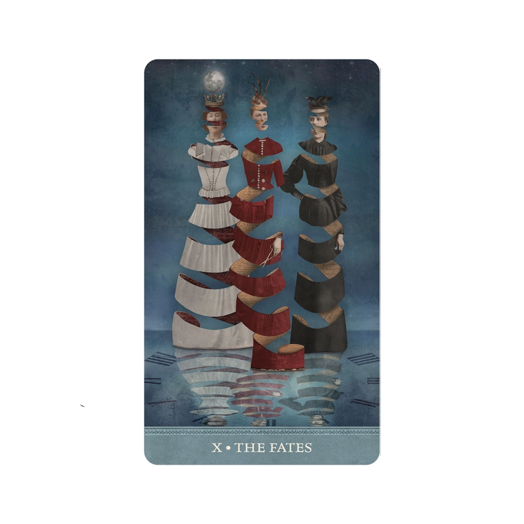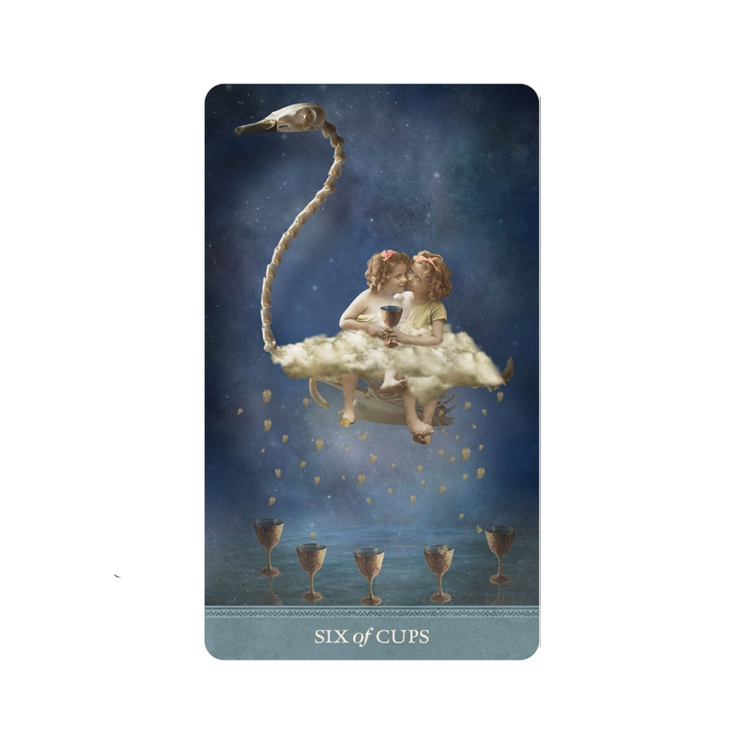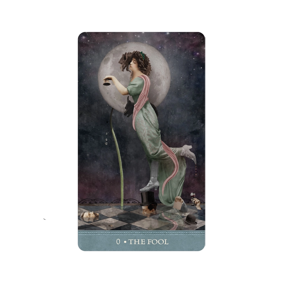 She presents tarot as a mirror that reflects our deep inner truths and reveals our hidden motivations, beliefs and expectations. Her art creates an alchemical blend of multiple paint media with digital photographic montage, offering signs and symbols to help the reader interpret tarot and all its wisdom.