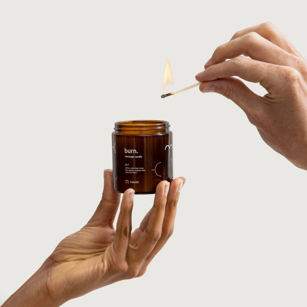 FORMULA: Burn's skin-softening jojoba and soybean-oil based formula has an ultra-low melting point. The candle's oil gets warm, not hot, and can be poured directly onto skin once melted and extinguished.