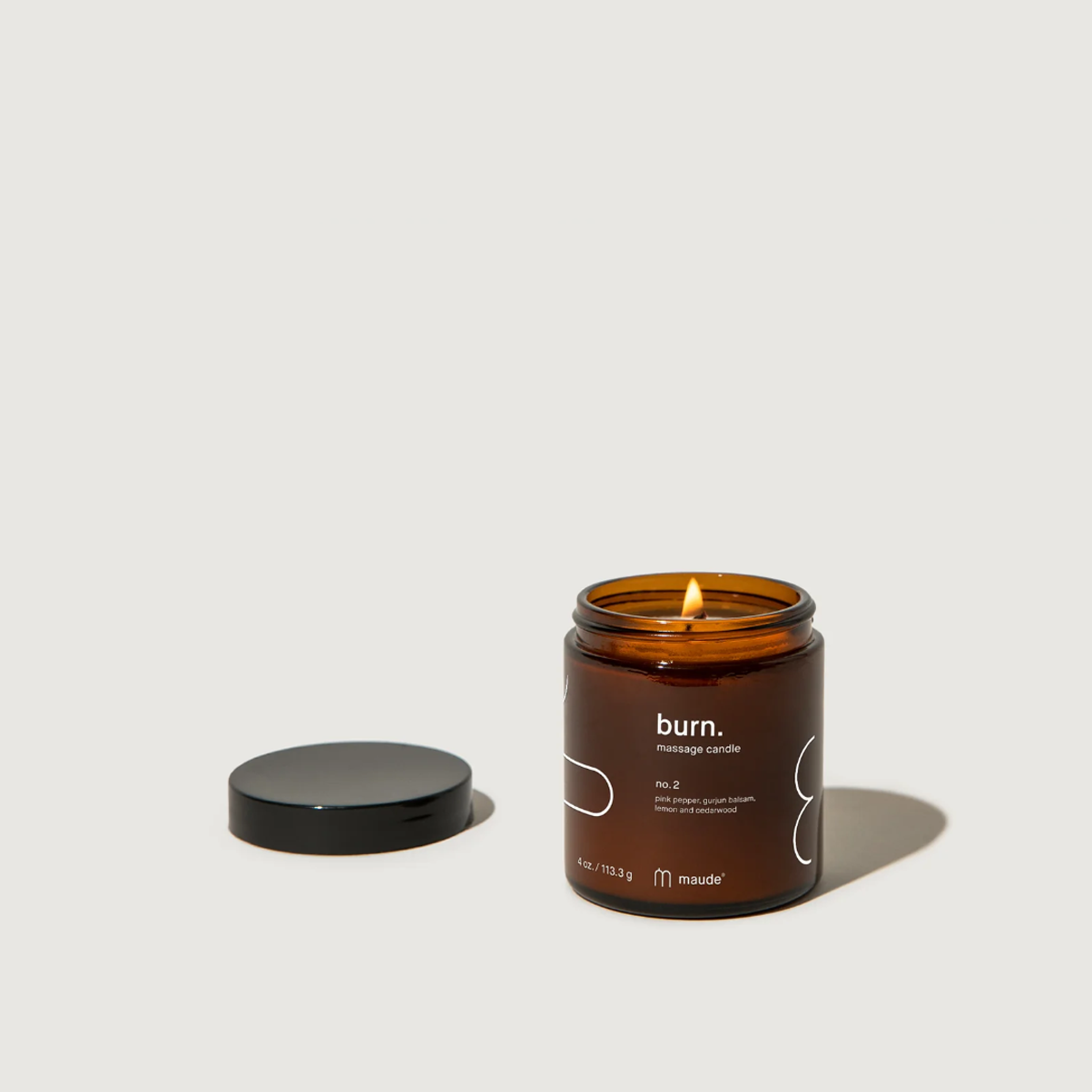 FORMULA: Burn's skin-softening jojoba and soybean-oil based formula has an ultra-low melting point. The candle's oil gets warm, not hot, and can be poured directly onto skin once melted and extinguished.