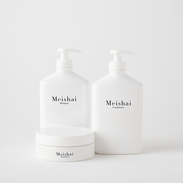 "The Meishai Experience," this meticulously crafted haircare routine born out of a passion for healthy hair and embracing the essence of clean beauty, where each is certified by Asthma Allergy Nordic, vegan and perfume-free. Your experience begins with a nourishing Shampoo that pampers your scalp and gently cleanses your hair. Following thus, our Treatment works its magic by delicately opening the outer layer of your hair, undertaking the tasks of rebuilding, repairing, and fortifying it from within. The final touch is provided by our rich Conditioner, which seals and protects your hair, leaving it irresistibly silky soft.