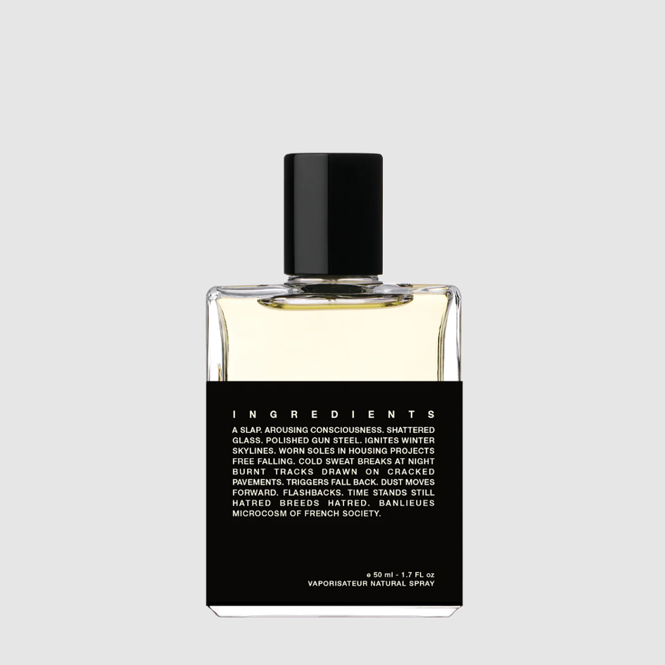 "A calm yet confrontational scent; that traces your neck like a sharp cold blade with buchu sulfur, metallic bloody notes and cold aldhydes. There is a feeling that something is going to happen with burnt rubber, cold cedar notes creating a concrete effect, combined with birch tar, leather and bay oil." - Mark Buxton