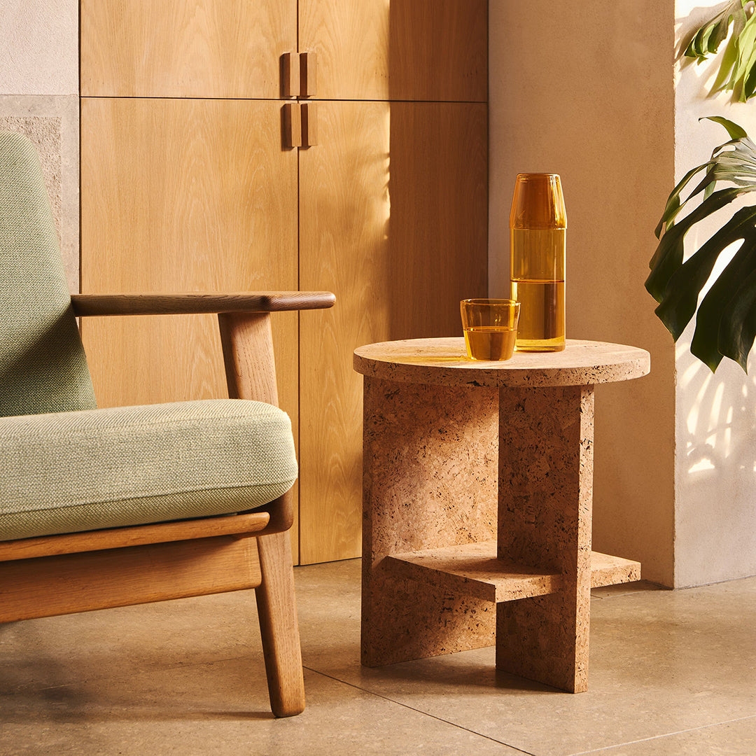 Milk is a carafe and glasses set that is inspired by the design of a traditional milk bottle. The glasses can be stacked upside-down on top of the carafe to act as a lid and for easy carrying and storage.