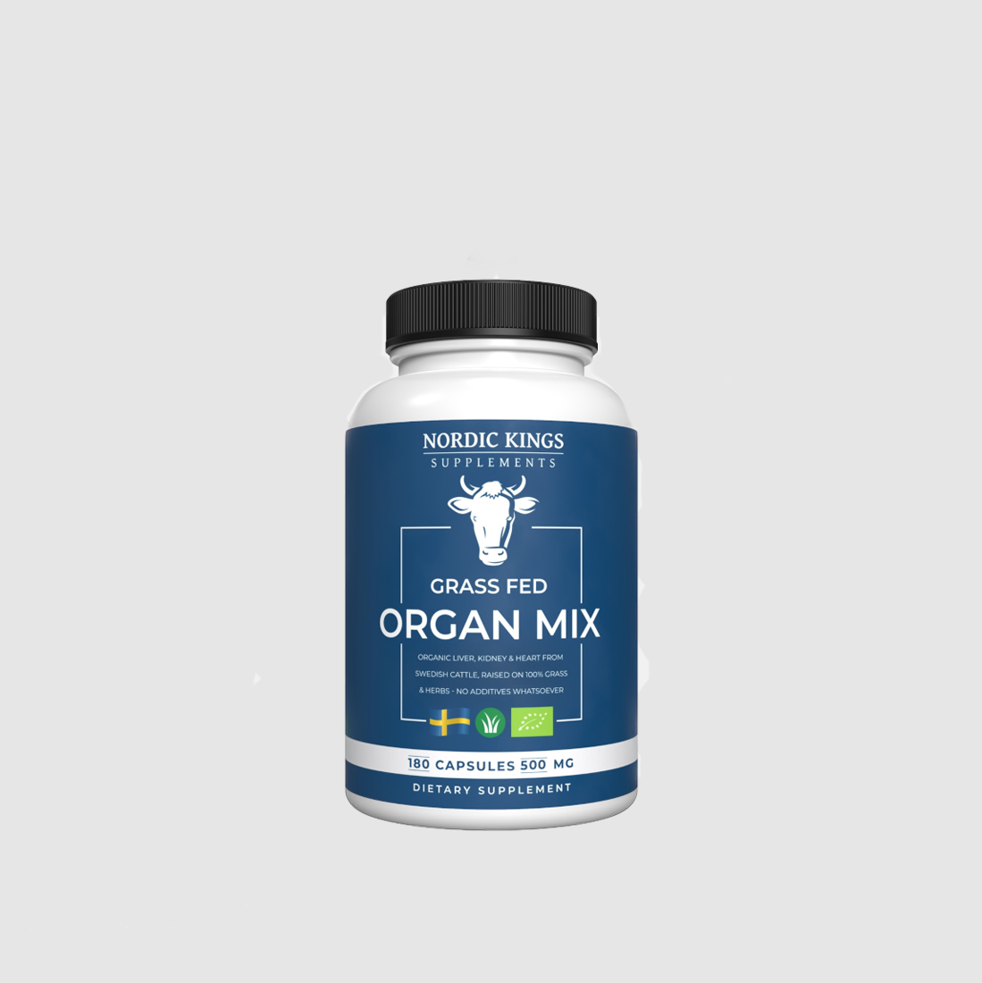 Grass fed organ mix with beef liver, kidney and heart, all in one convenient supplement. From Swedish, Organic and KRAV certified animals, raised on 100% grass and herbs and 0% grains.