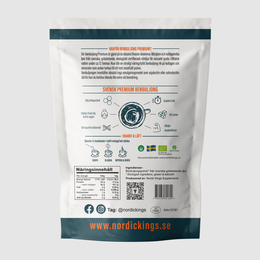 Nordic Kings Bone Broth Premium is made from the absolute finest raw materials sourced from Swedish, grass fed, Organic certified cattle.