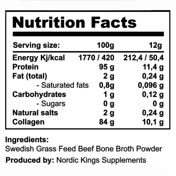 INGREDIENTS: Swedish Grass Feed Beef Bone Broth Powder