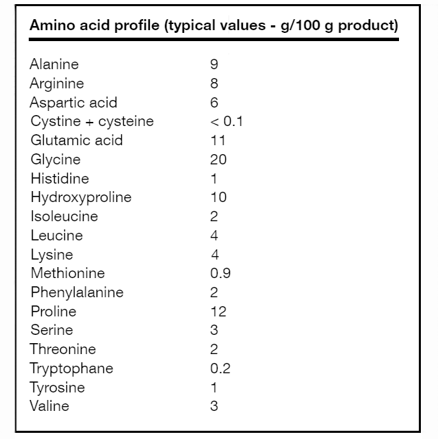 Bone broth Premium is a good bioavailable source of beneficial amino acids, mainly glycine.