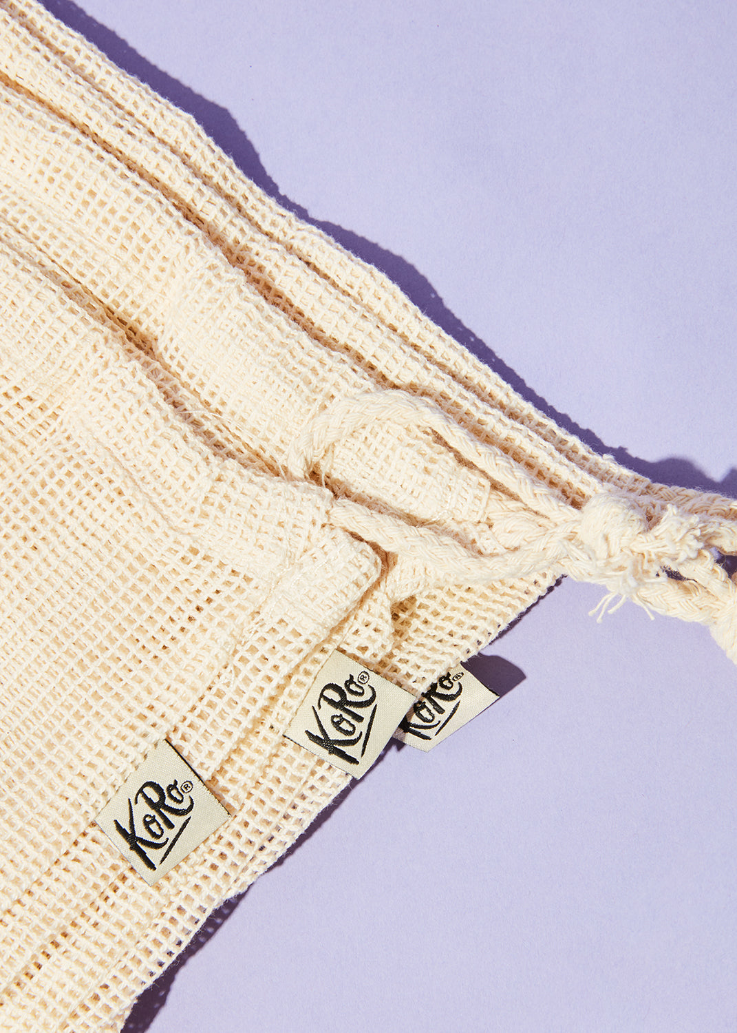 We all know that plastic bags are harmful to the environment - not just because they are made from plastic, but also because they are mostly used one time and thrown out. But thanks to Koro's fruit and vegetables bags, we need no more of that! The bags are made of cotton and can be reused for a long time.