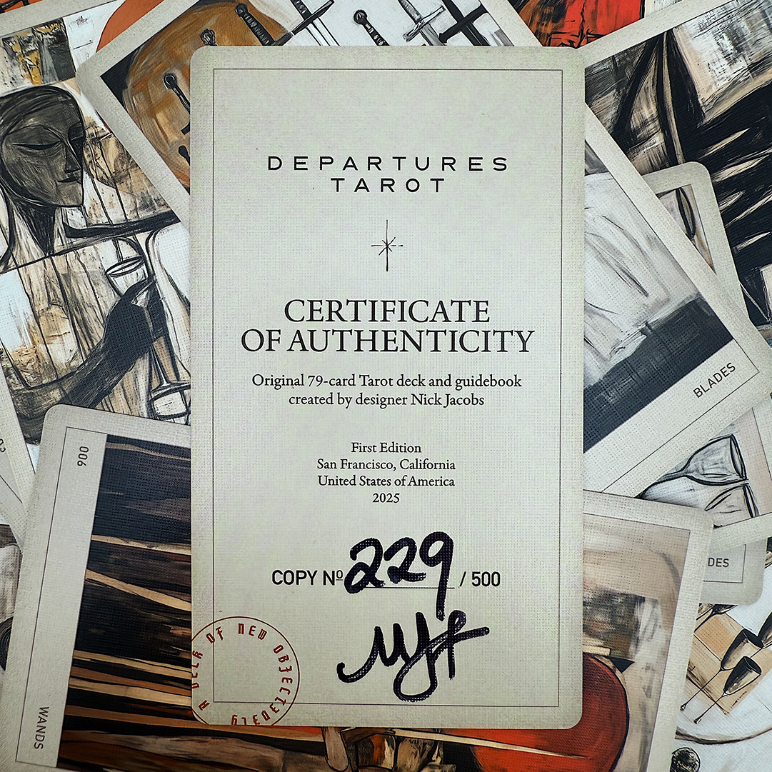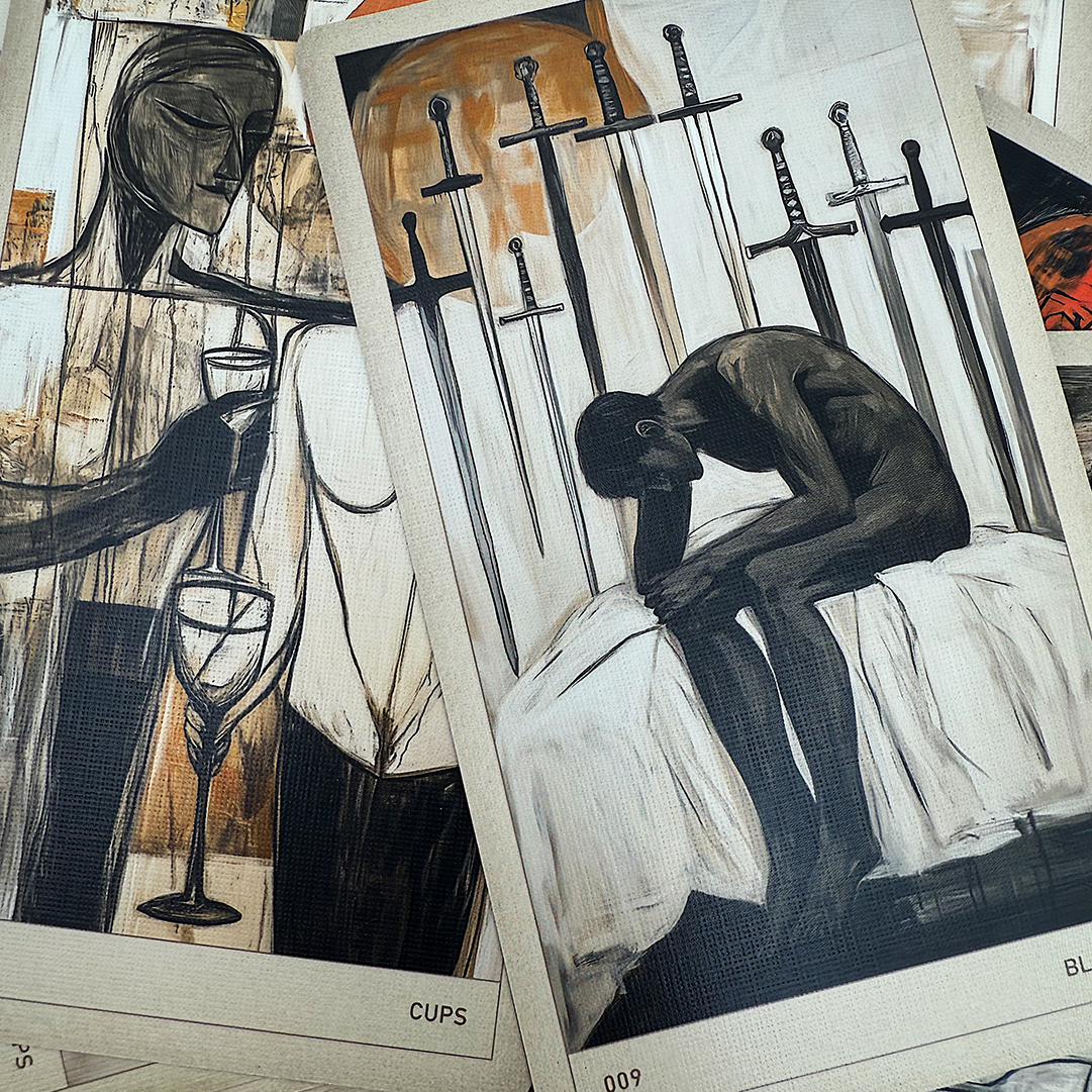 The Departures Tarot marks a dramatically new creative journey for me—one that blends my love for a niche yet significant movement in art history with an unfamiliar aesthetic rich in grit, texture, and immediacy.
