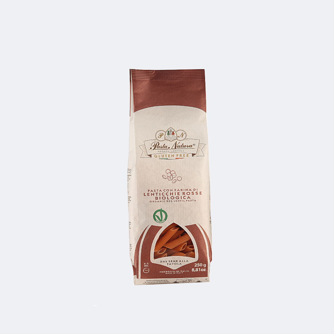 Pasta with red lentil flour brings joy to the table and stimulates the appetite of all diners, even the youngest. The beautiful color between orange and red allows you to make dishes with a lively and tasty look. The taste of red lentils is delicate, so it lends itself to any seasoning. The pasta with red lentil flour is rough and porous and retains the sauce well; it also keeps cooking and does not flake. With PASTA NATURA you will bring to the table an al dente pasta dish, healthy and genuine.