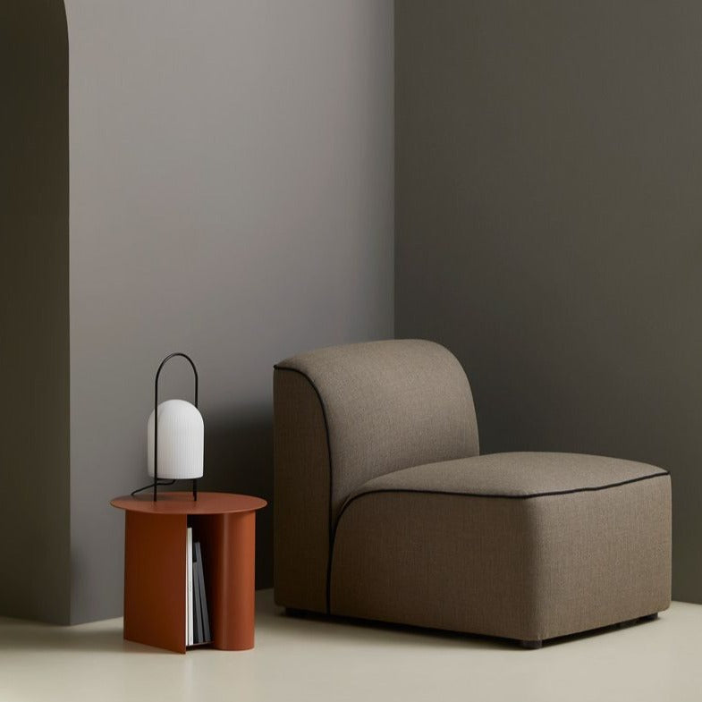 The Sentrum side table follows the principle of simplicity as it has been stripped from all unnecessary elements. What is left is a strong base and geometrical expression with pure functionalities. The S-shaped construction makes the centre of attention and creates two spaces for storage on both sides to enhance the usability of the side table - ideal for magazines and books.