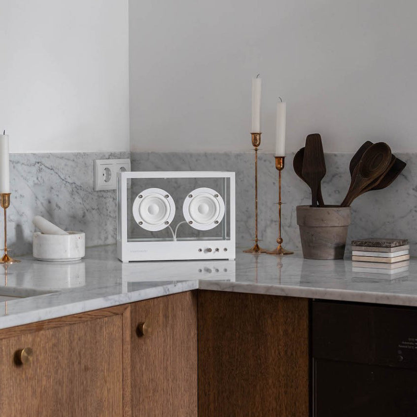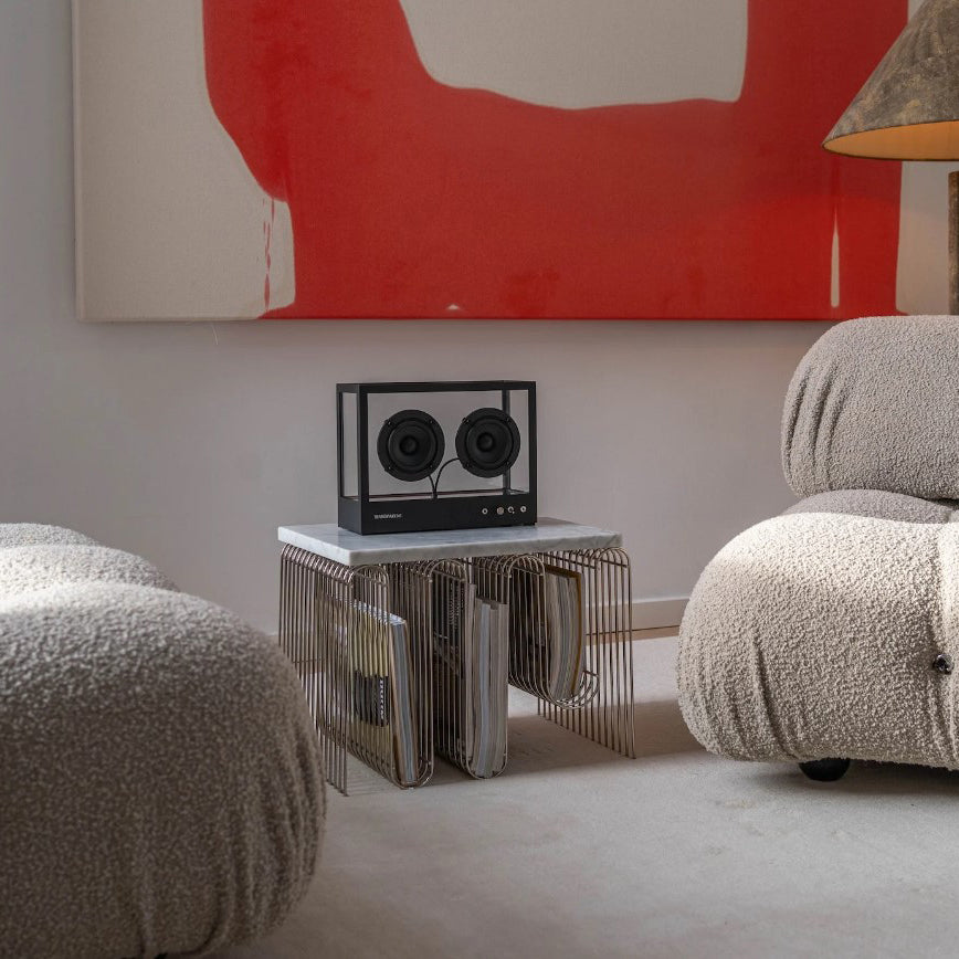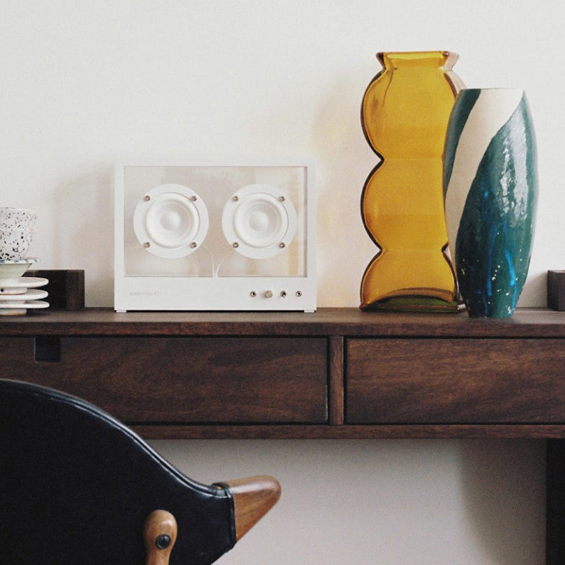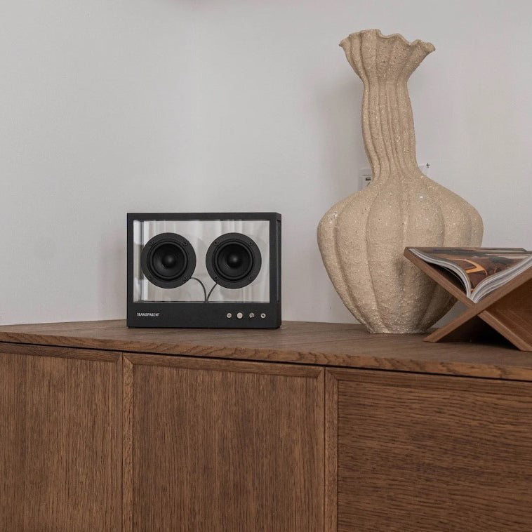 The Small Transparent Speaker - a compact yet powerful device that delivers exceptional sound quality with its unique Transparent sound technology. This sleek and stylish speaker made of tempered glass and aluminium is the perfect addition to any music lover's collection. This speaker is designed to be as much an interior object as a great sounding piece of technology. It comes with Bluetooth 5.0, but it is also ready for whatever tech that might be useful in coming years.