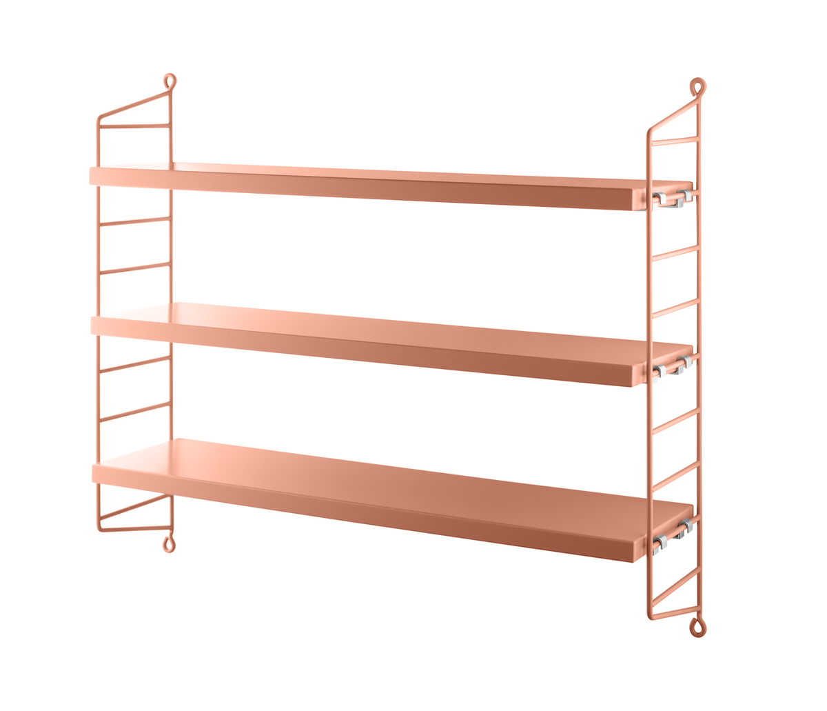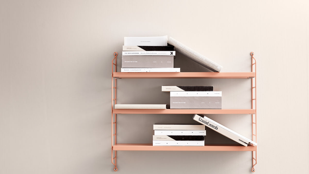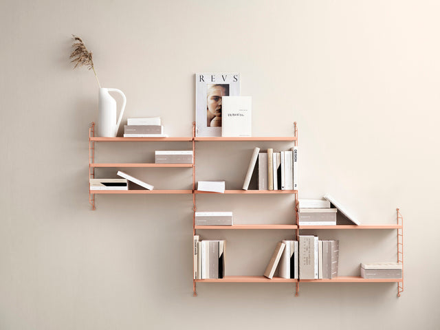 String® Pocket got its name due to the convenient and handy size. With a height of 50 cm, width of 60 cm and depth of 15 cm you will be able to fit a String® Pocket anywhere. Mount it in your bedroom and use it as your bedside table, place it above a cupboard in your hallway or living room or why not mount it in the kitchen for your cookbooks and spices. One Pocket shelf is complete, but that does not stop you from playing around with it just like the shelving system. With two or three packages you can build out creative solutions where the design and colour choices are totally up to you. A minimalistic monochrome design or a colour splash with a mix of mustard, blush and white? As you can imagine, the options are endless!