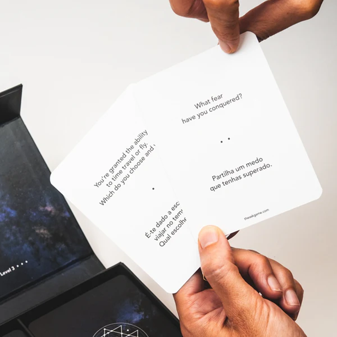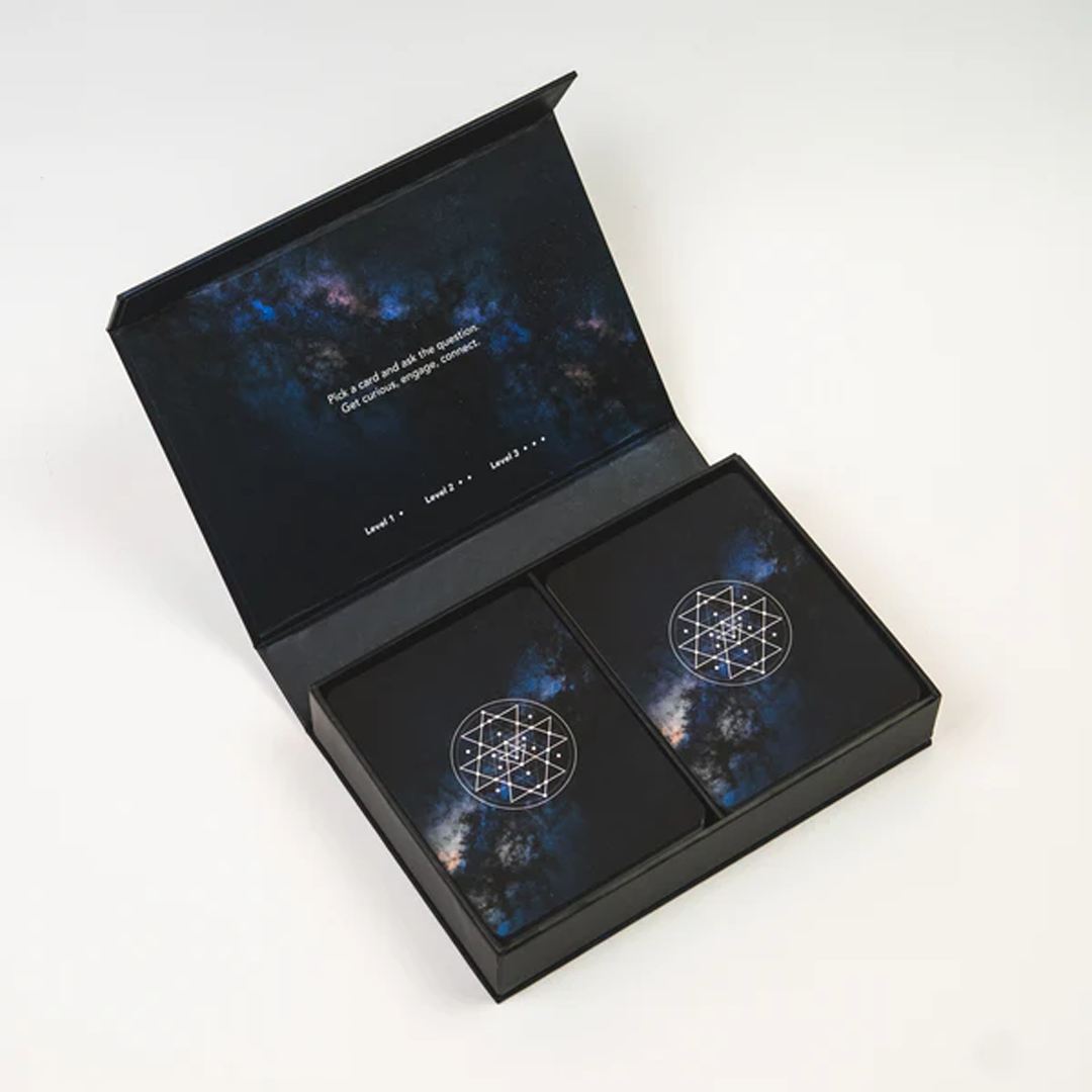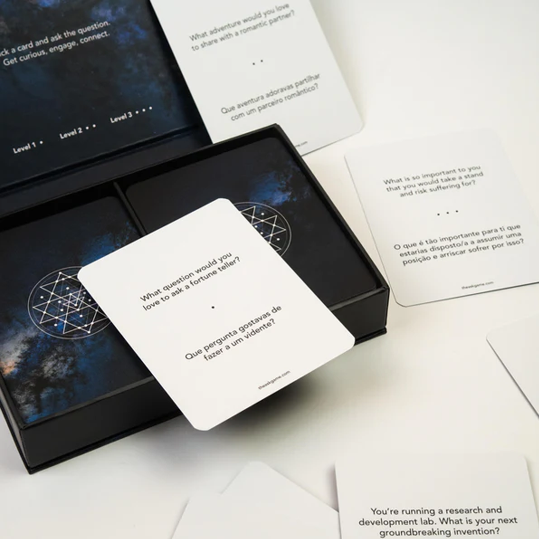 Engage and connect with those you love like never before. Perfect to spice up any occasion: a family lunch, dinner with friends, company event or romantic date. Play in a group, or solo as inspiration to deepen self-knowledge.