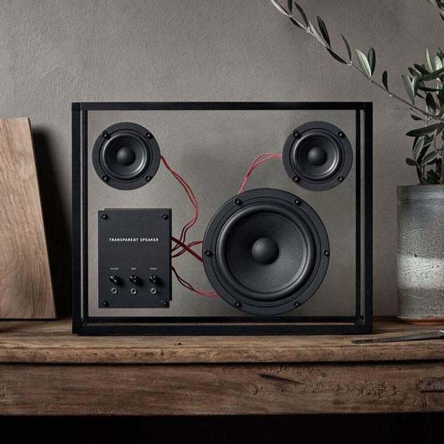 The tightly sealed 10 liter (2,6 Gal) acoustic volume and the custom designed 6 inch woofer helps in creating a very controlled reproduction of sound. We enlist the worlds best audio engineers to tune the digital sound processor (DSP) to reach full transparency. With the Transparent Speaker you will hear a detailed reproduction of complex low-ends of modern music production. With the base and treble dials you can crank up the setting on the high- and low-end to fit your music preference and make everyone get off the couch and start dancing at your home party.