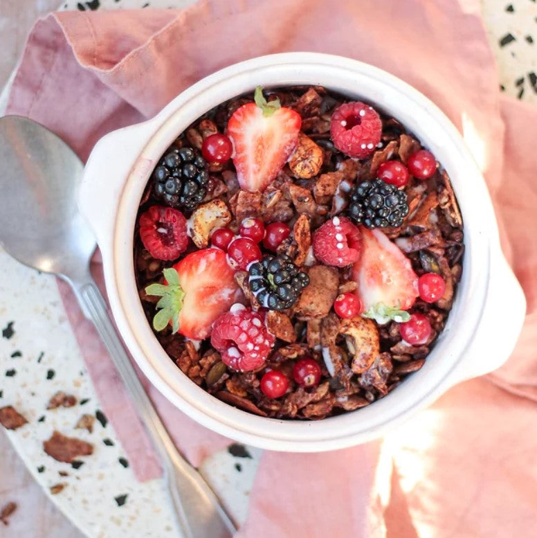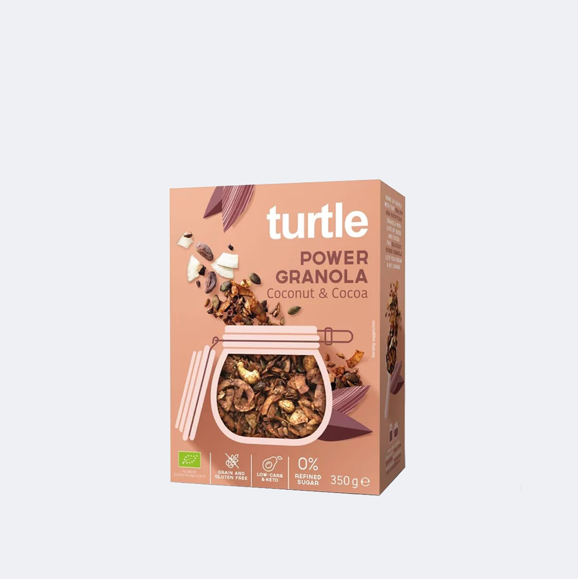 Power Granola Coconut & Cocoa is flavored with coconut and cocoa powder and nibs, for a delicious version.