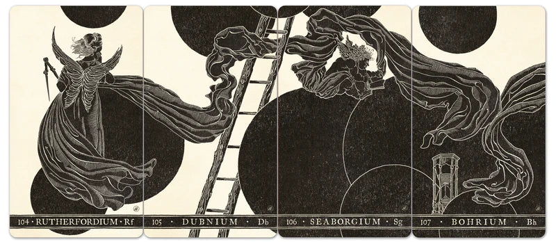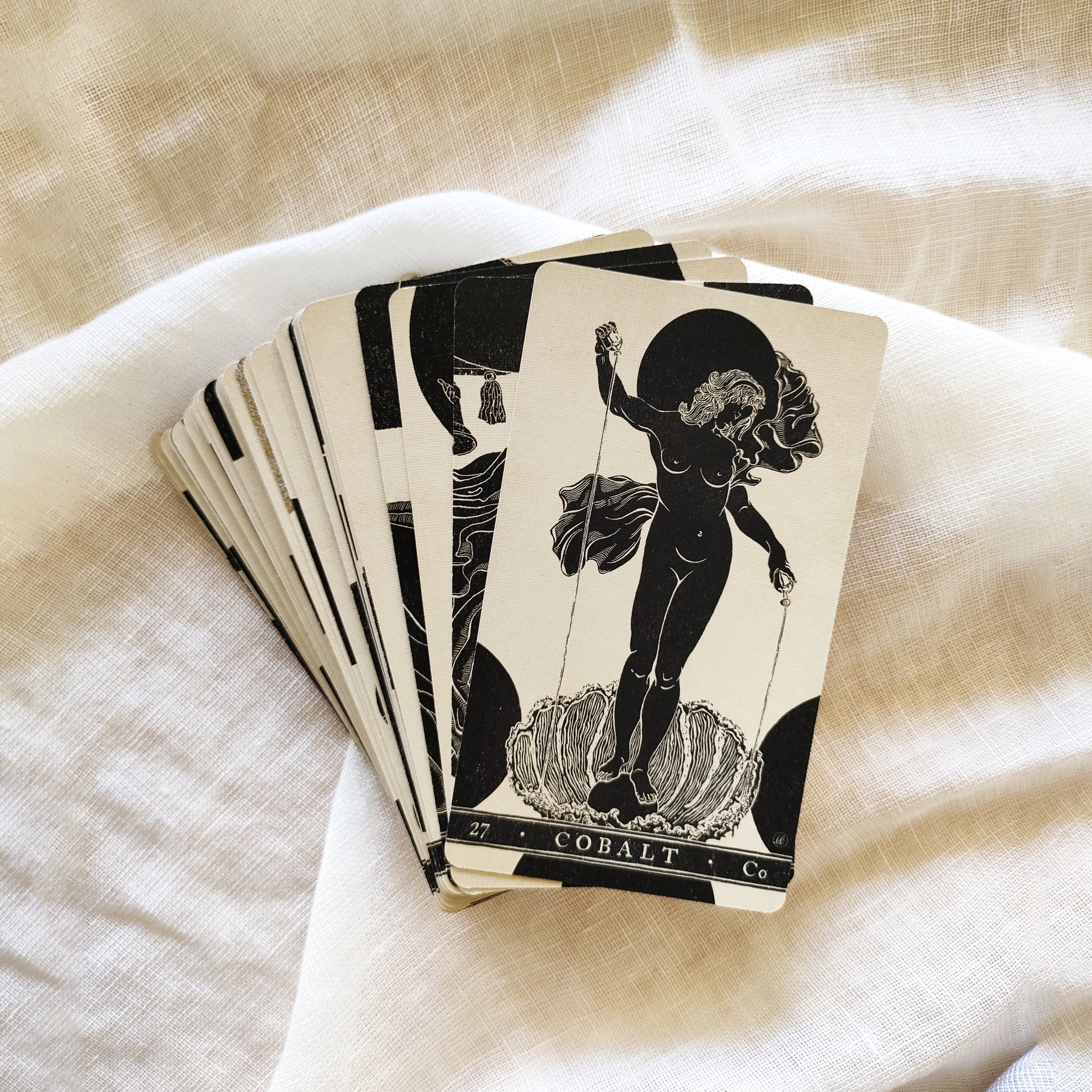 This powerful message of unification that circles throughout the Table of Elements inspired Uusi to create "Materia Prima: An Expression of Matter". This deck is an expression of the periodic table. Each chosen element is given its part in the cosmic drama of Life, conjuring matter in the soulful, playful language of the imagination.