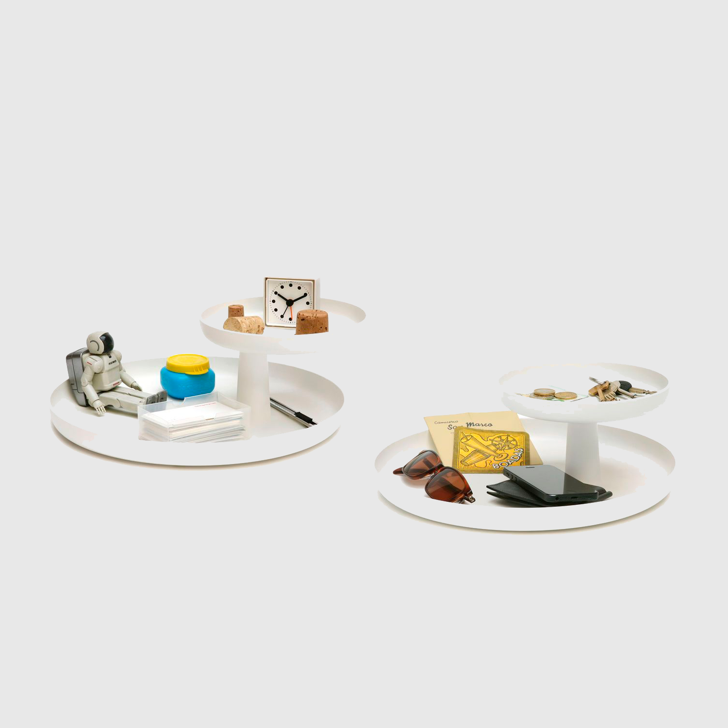 With his design for Rotary Tray, Jasper Morrison has given the classic tiered etagere a new contemporary look. Thanks to its understated shape and colouring, Rotary Tray naturally complements all types of interior styles and can be used for a variety of different functions. Whether in the living room, in a bathroom or entryway, at the office or in a child's room: the Rotary Tray offers a decorative way to tidy up any space.