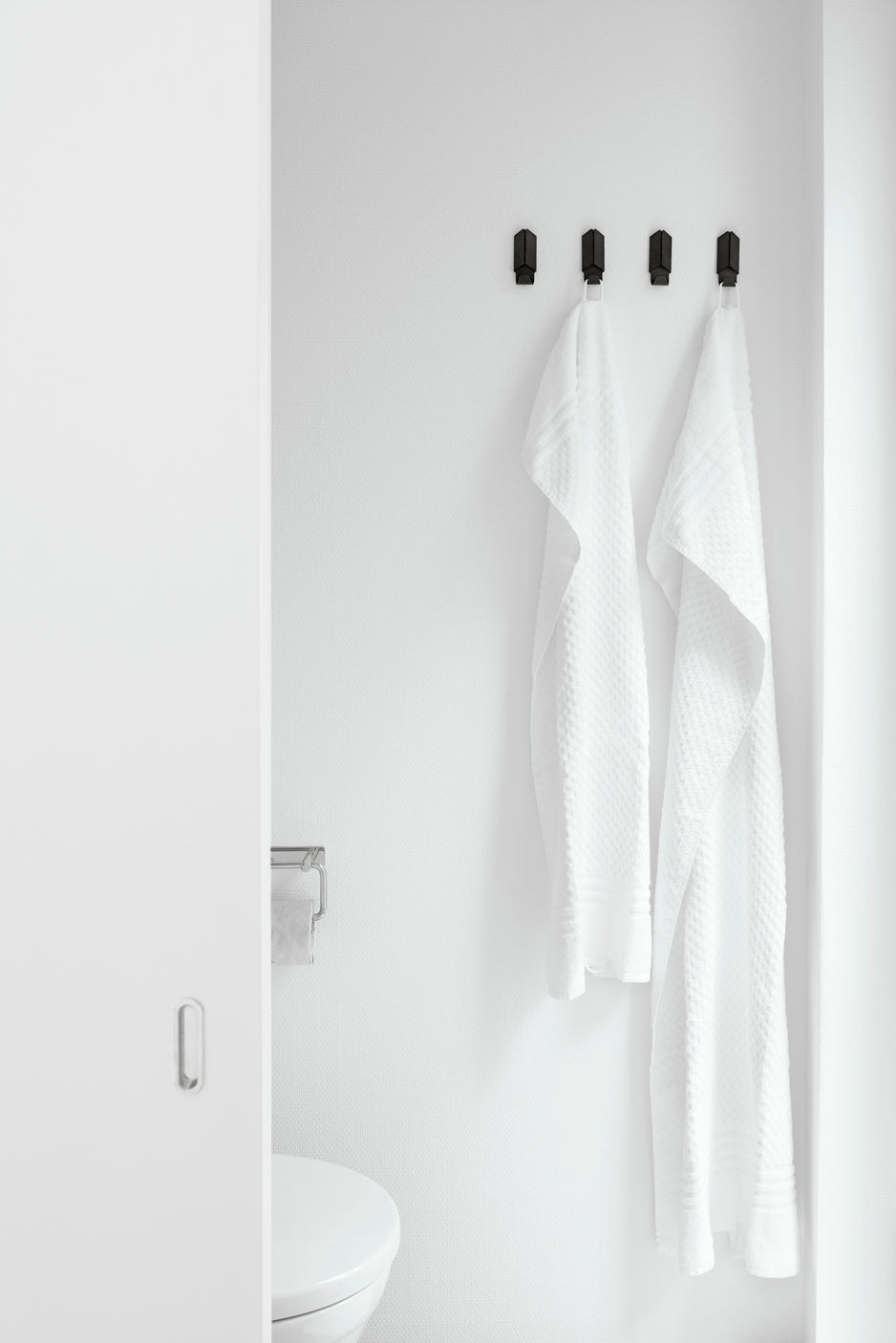 Anodized aluminium is the material in Volet Hook, which can be used, mounted and put up anywhere. The folded metal wings conceal the screw, while the hook does the job.