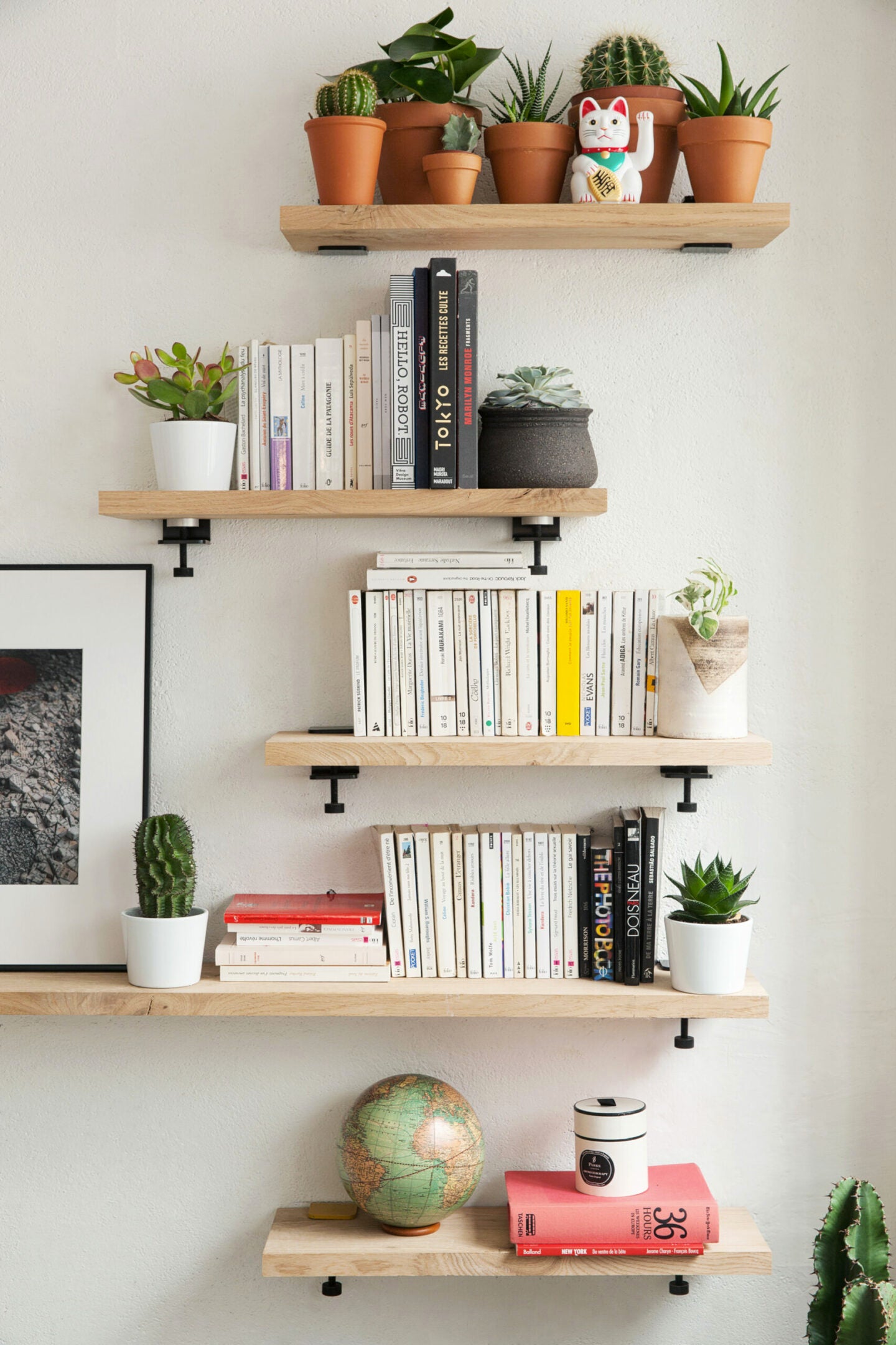 With the wall bracket and its clamp you can create a storage shelf or bedside shelf using a variety of shelf tops. Combine it with TIPTOE legs to create a desk, worktop or breakfast bar which attaches to the wall.