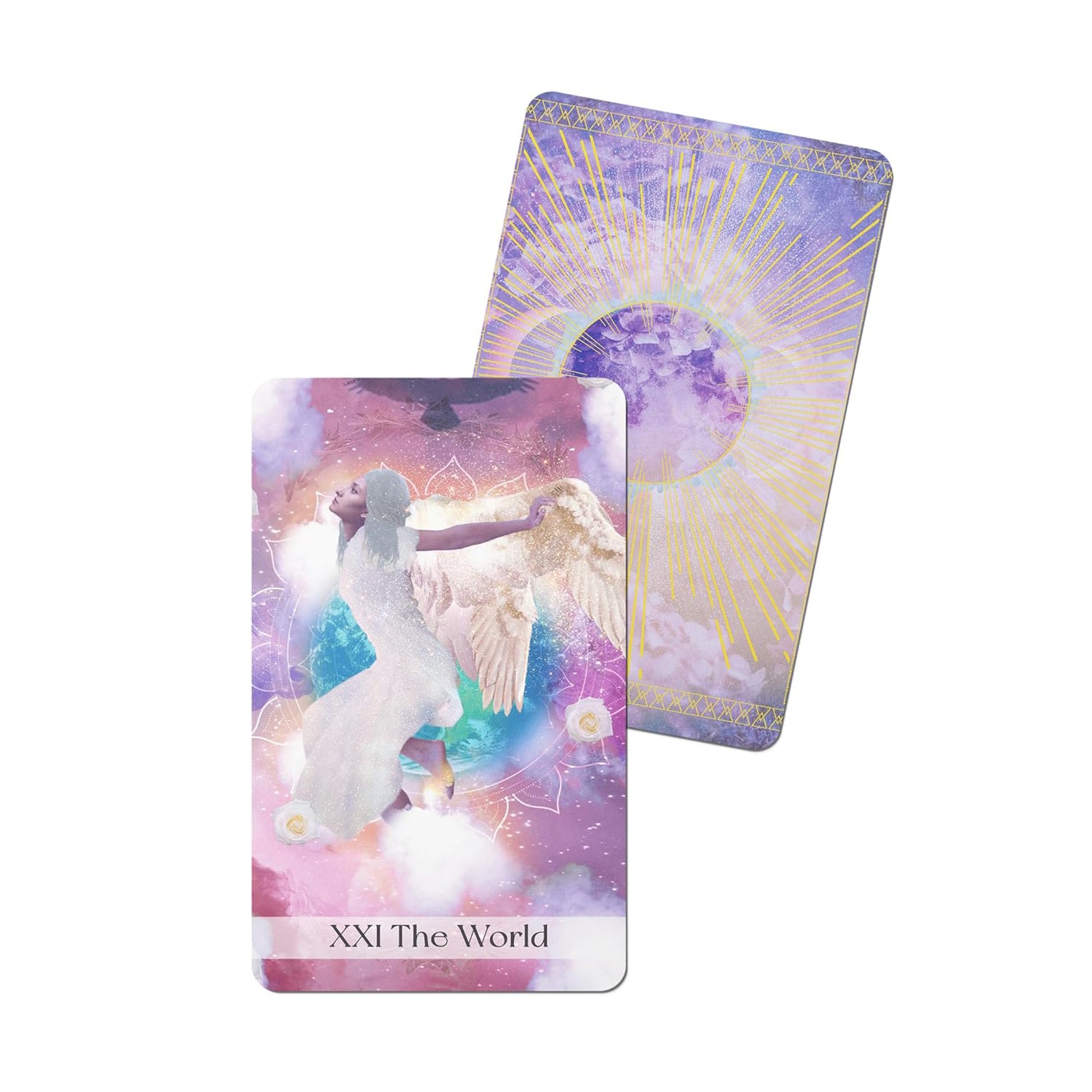 Based on the online tarot deck that has uplifted and enlightened millions of people since its launch in 2017, this is the one and only official physical Moon Dust Tarot Deck. Connect with your spirit on a higher level, commune with the wisdom of the moon, stars and the universe, and find new meaning in the Tarot with this beautiful deck sumptuously presented in sparkling gold foil!